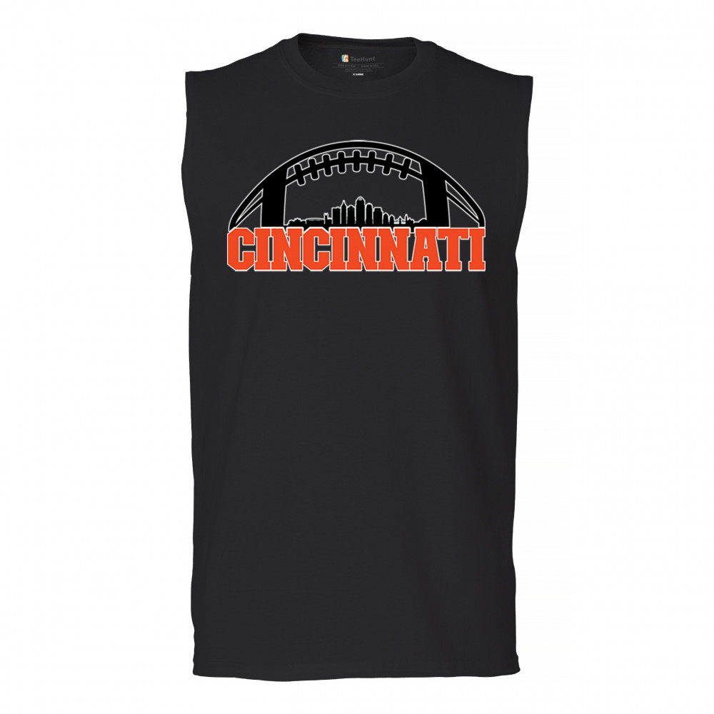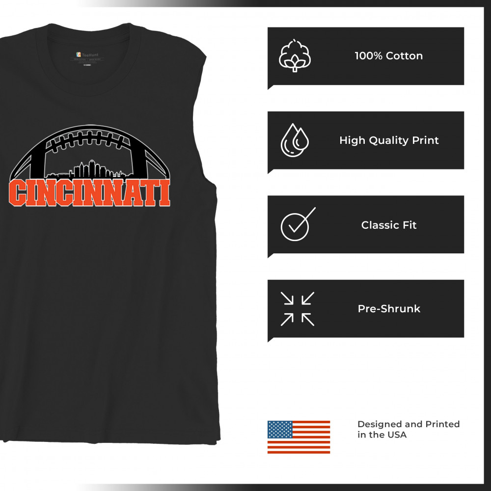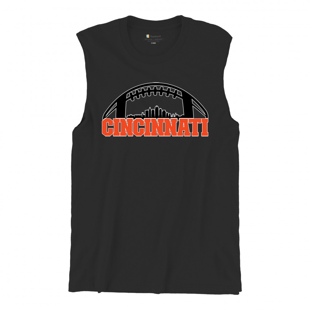 Celebrate Cincinnati and football with this bold skyline design under a football arch. Perfect for fans, tailgates, and game days!