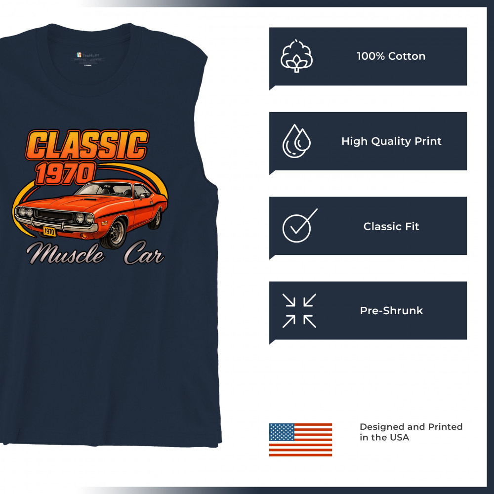 Show your pride for American muscle with this bold 1970 design featuring a classic orange coupe in retro detail. Perfect for gearheads, vintage car lovers, and collectors who live for the sound of old-school performance. A tribute to the raw attitude and street dominance of 1970 muscle.