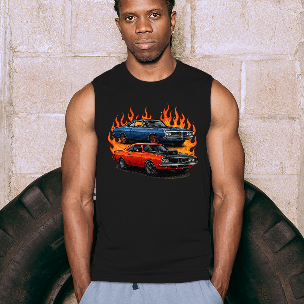 This flame-wrapped design showcases two classic muscle cars set ablaze with attitude, style, and vintage horsepower. Made for adrenaline seekers, rev heads, and car lovers who thrive on raw speed and retro fire. Whether at a burnout meet or a car show, this design lets your muscle car pride burn bright.