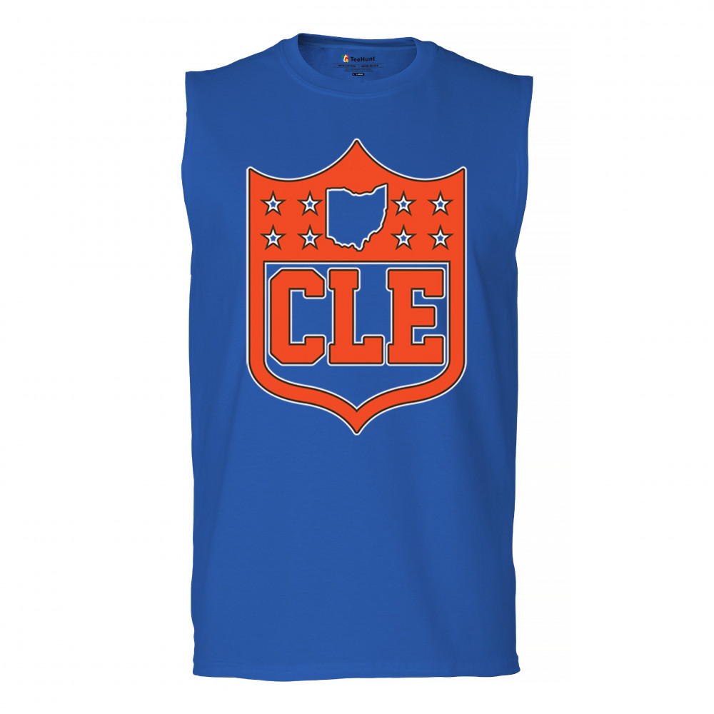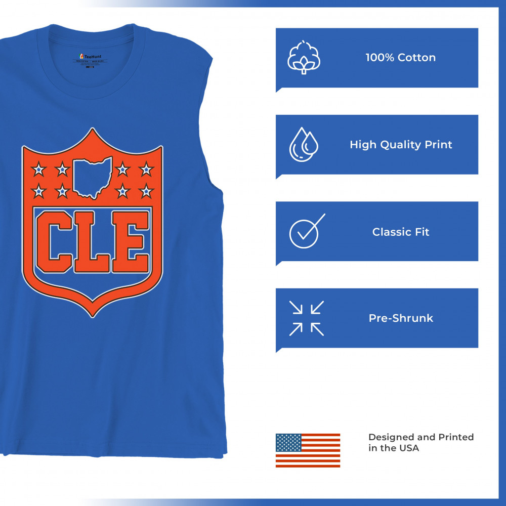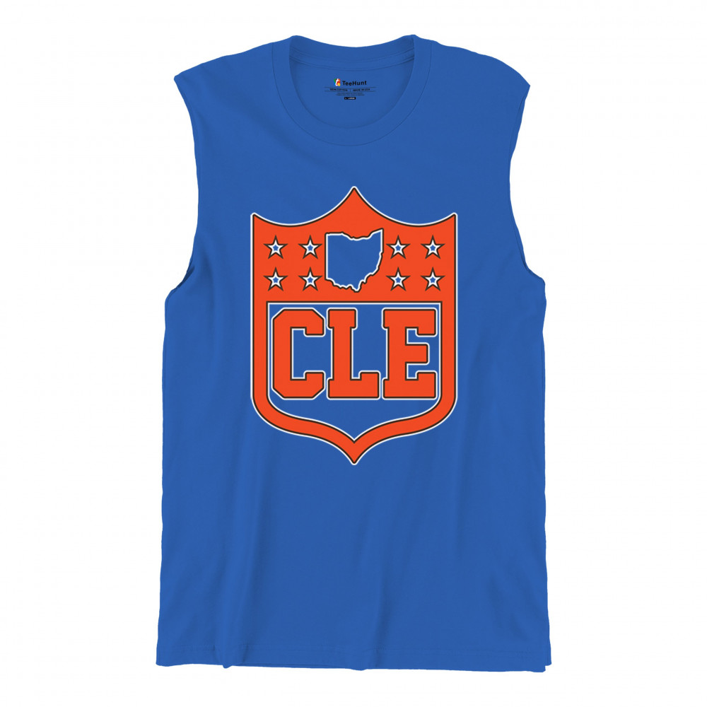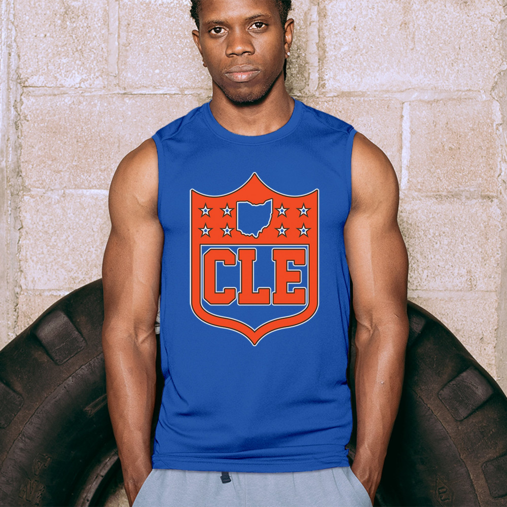 Bold CLE shield design honoring Cleveland football nation with Rust Belt pride, underdog grit, and blue collar sports heritage.