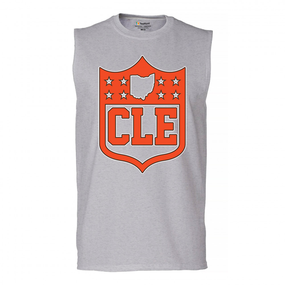 Bold CLE shield design honoring Cleveland football nation with Rust Belt pride, underdog grit, and blue collar sports heritage.
