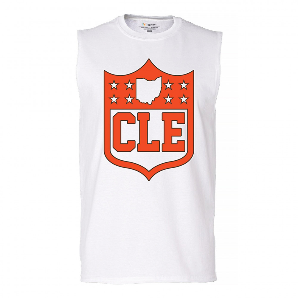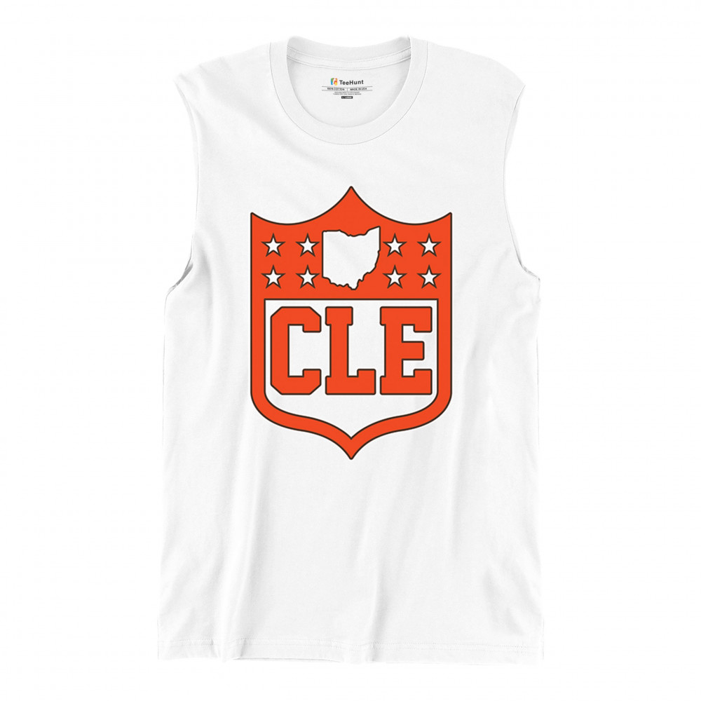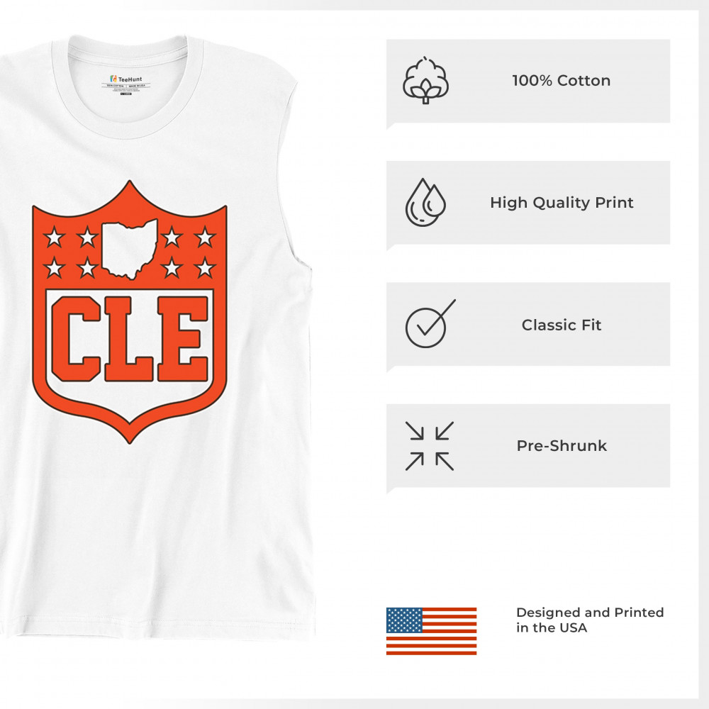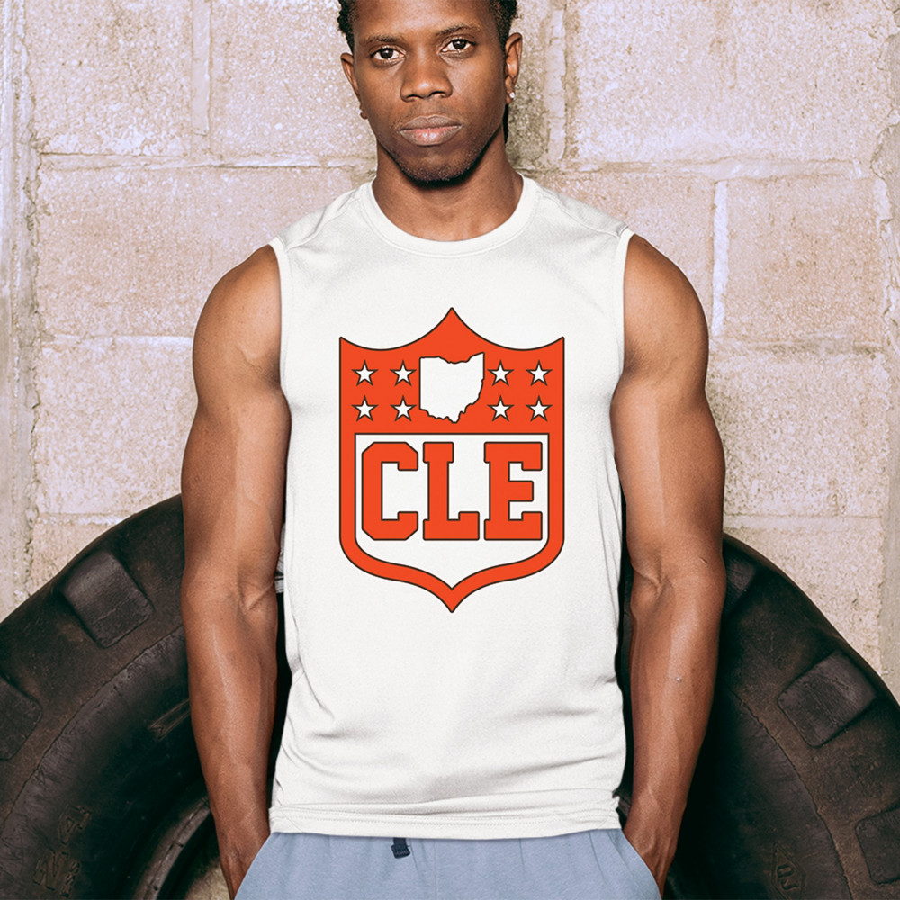 Bold CLE shield design honoring Cleveland football nation with Rust Belt pride, underdog grit, and blue collar sports heritage.