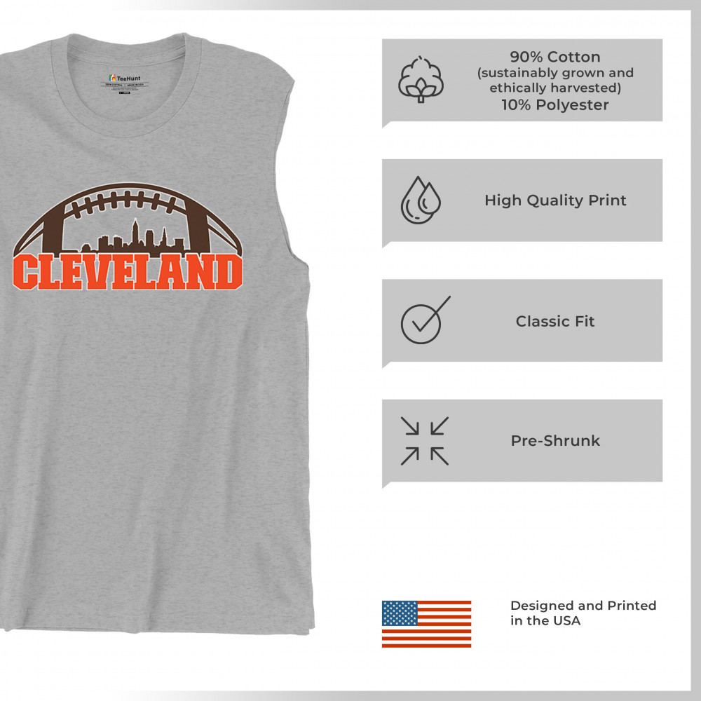 Unleash your Cleveland spirit with this standout football-themed design, featuring the city's skyline in bold detail. Ideal for game day celebrations, tailgate parties, or casual wear, this design embodies the energy and pride of Cleveland's sports culture. Whether you're a lifelong fan or just love the city's vibe, this is a must-have for every Cleveland supporter.