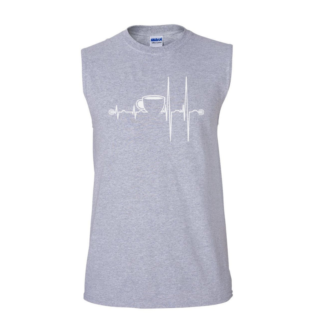 COFFEE CUP HEARTBEAT muscle shirt energy waking up coffee drinker sleeveless gray