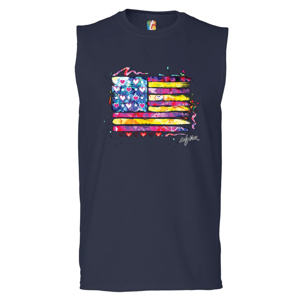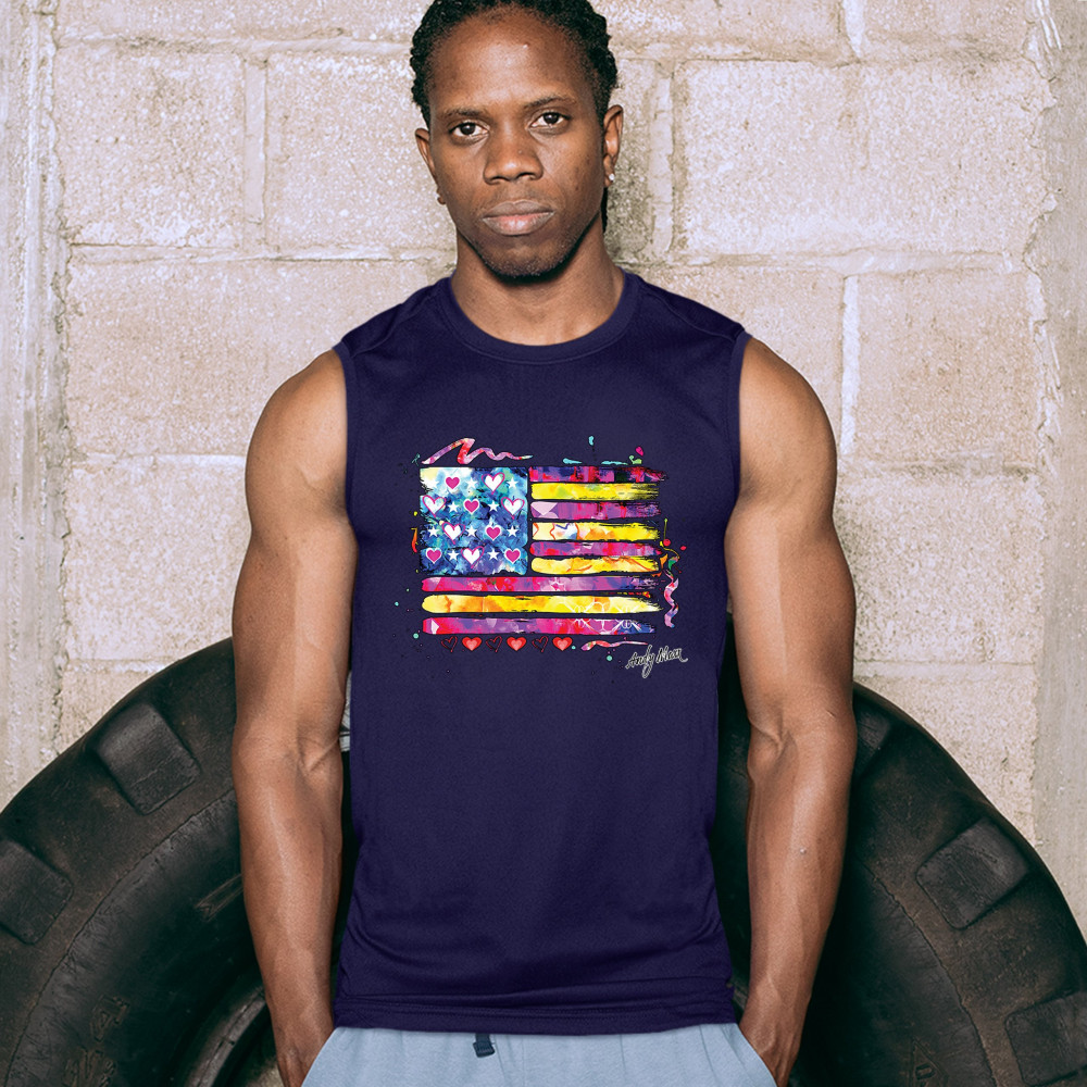 COLORFUL AMERICAN FLAG muscle shirt patriotic 4th of july independence men's navy blue