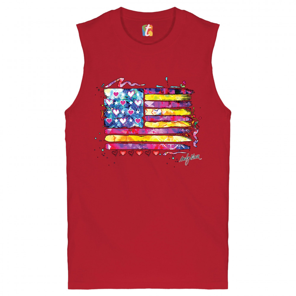 COLORFUL AMERICAN FLAG muscle shirt patriotic 4th of july independence men's red