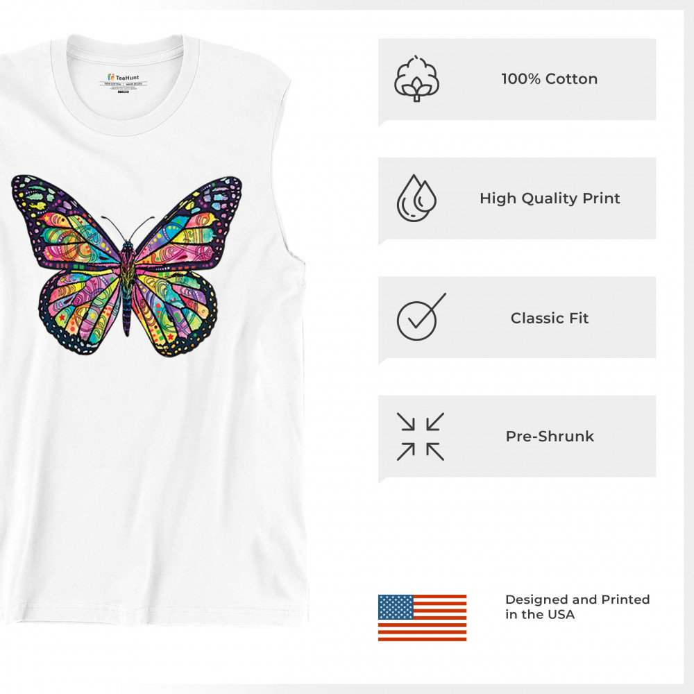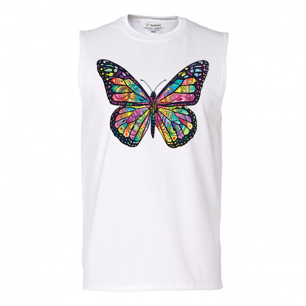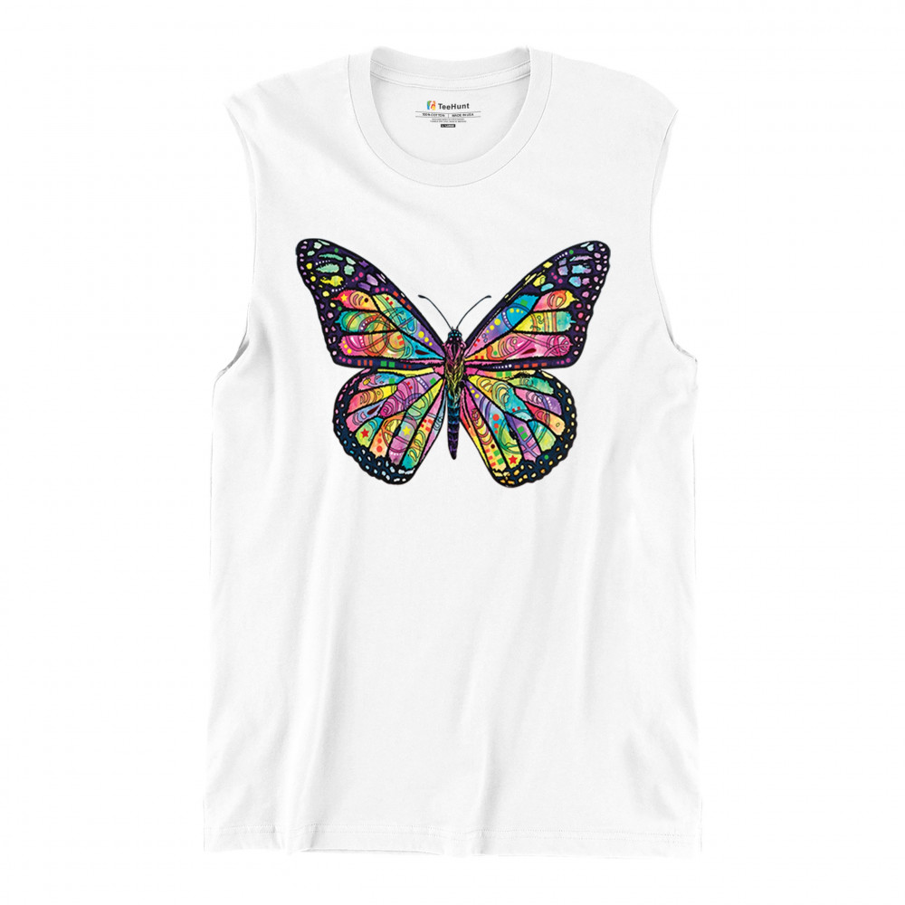 COLORFUL NEON BUTTERFLY muscle shirt dean russo beautiful nature men's white