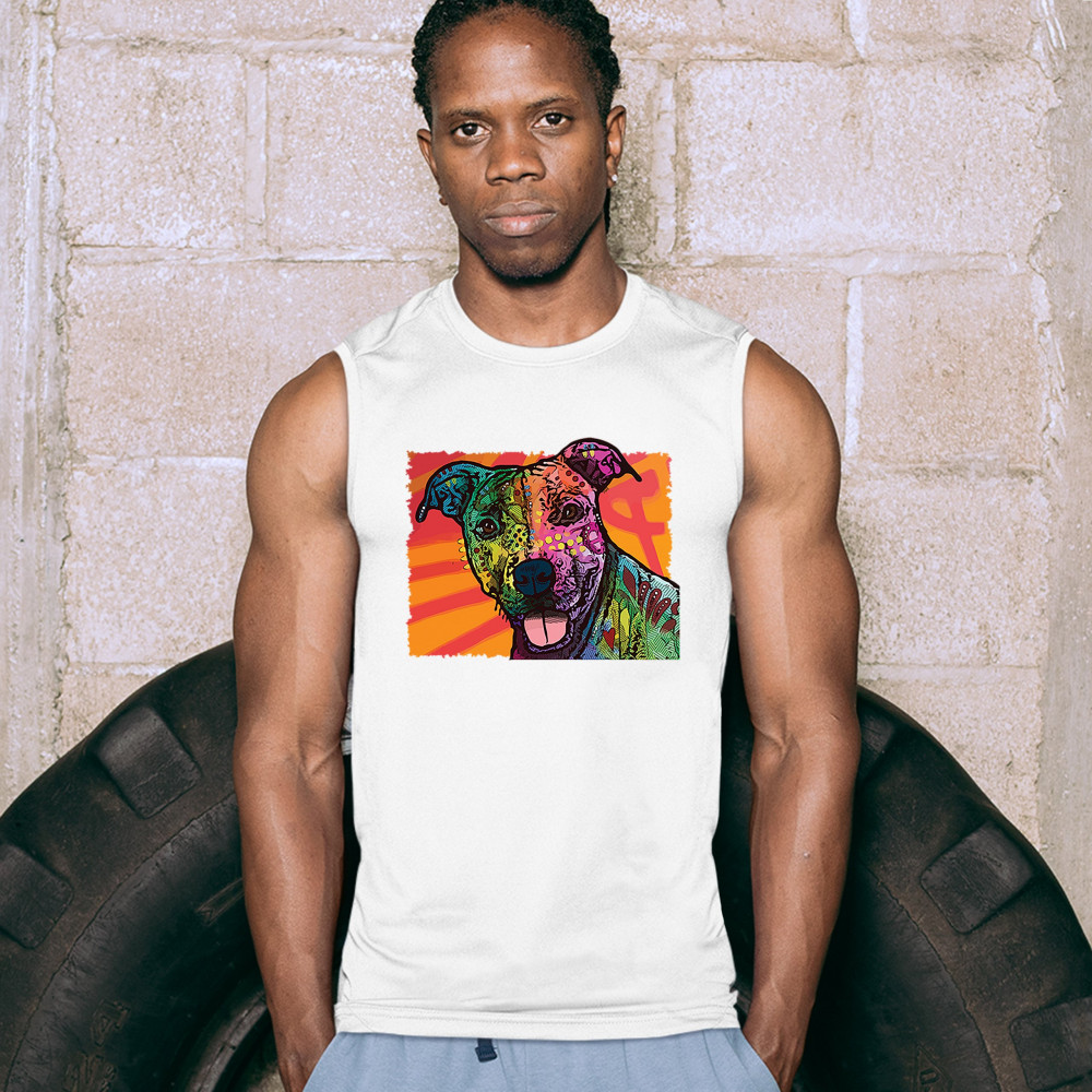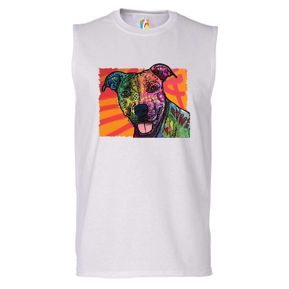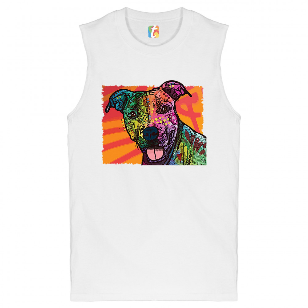 COLORFUL PITBULL muscle shirt andy maxx dog lover pet owner adopt men's white