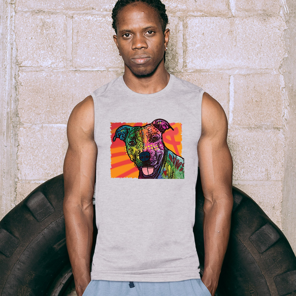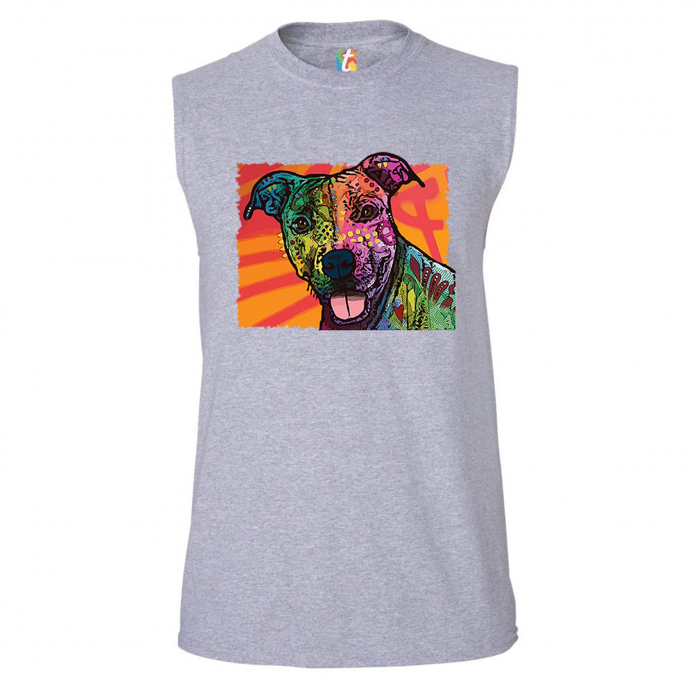 COLORFUL PITBULL muscle shirt andy maxx dog lover pet owner adopt men's gray