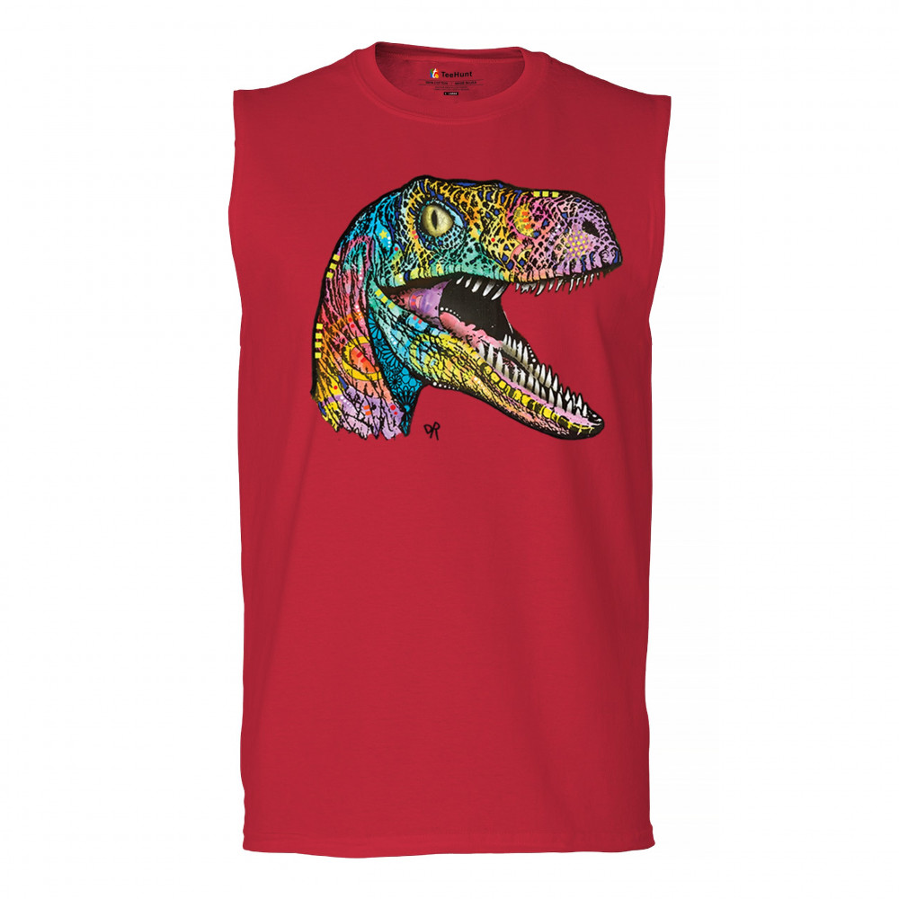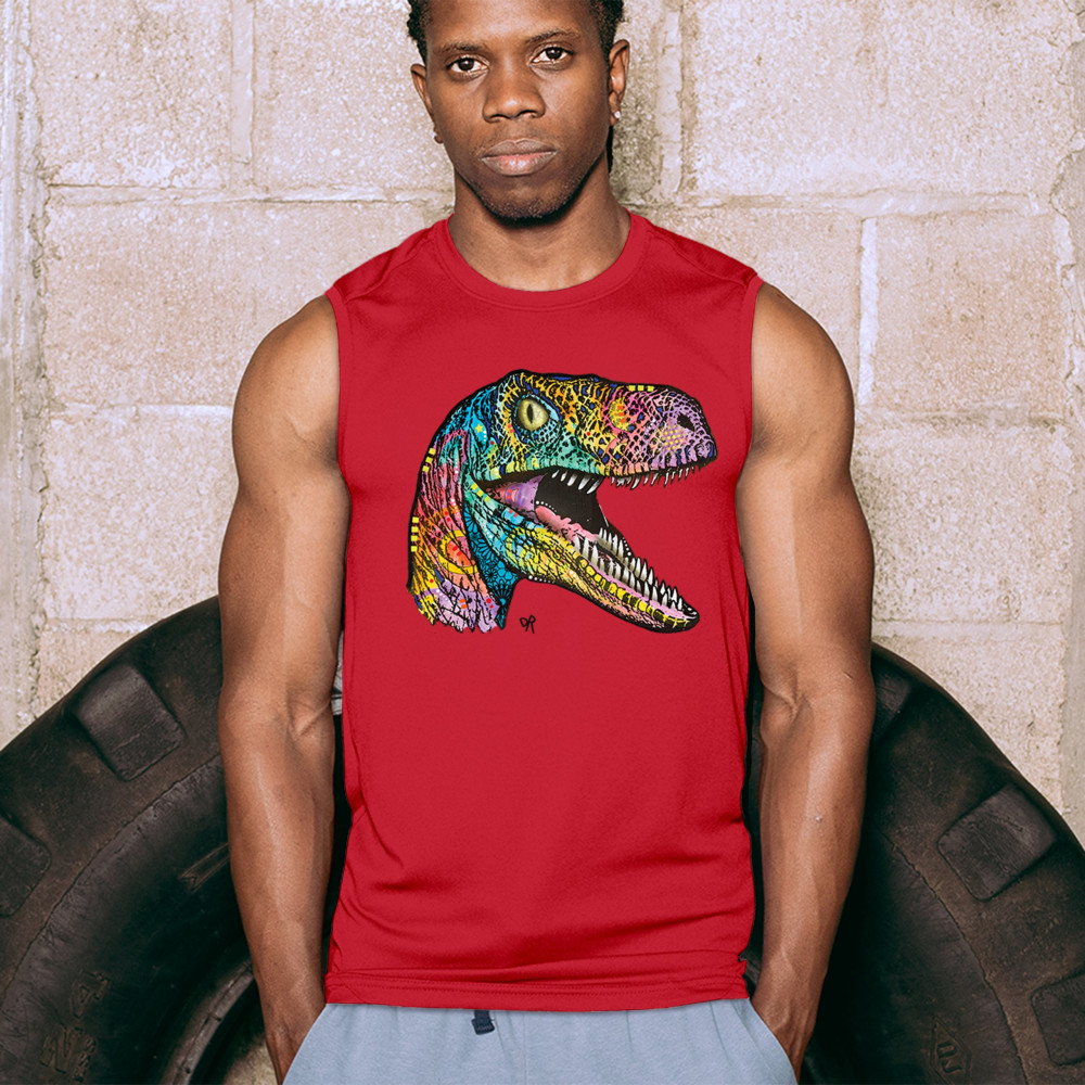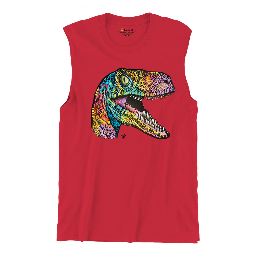 COLORFUL RAPTOR muscle shirt dean russo neon jurassic dinosaur men's red