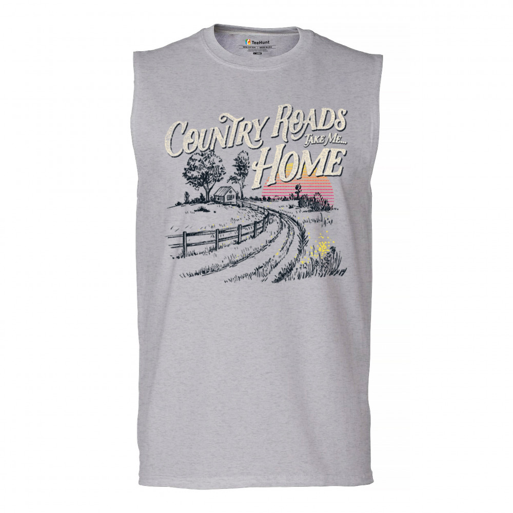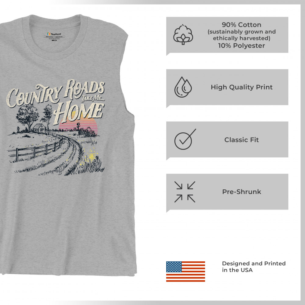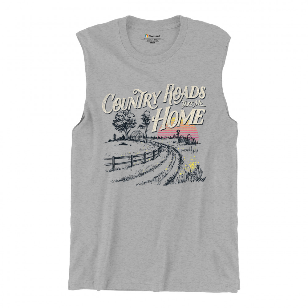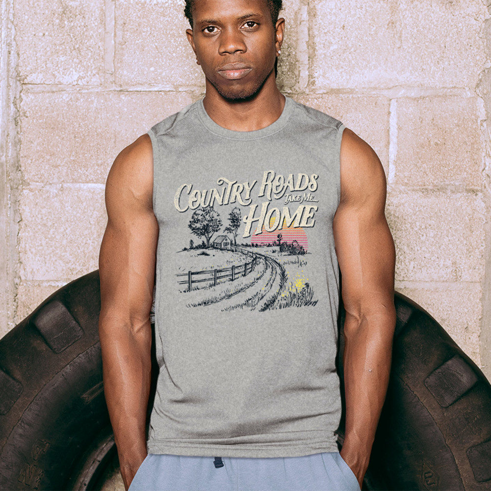 COUNTRY ROADS TAKE ME HOME men's muscle shirt vintage music festival sunset gray
