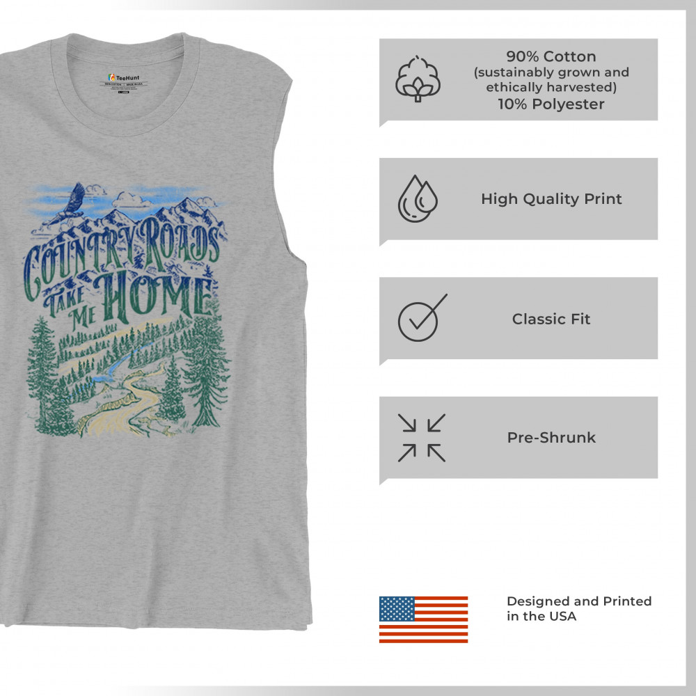 Country Roads Take Me Home celebrates rustic mountains, country music, Appalachian vibes, nature escapes, and American heritage.