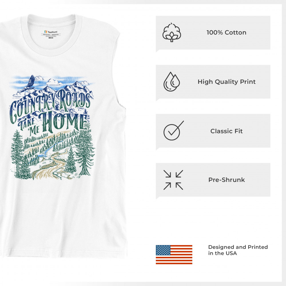Country Roads Take Me Home celebrates rustic mountains, country music, Appalachian vibes, nature escapes, and American heritage.