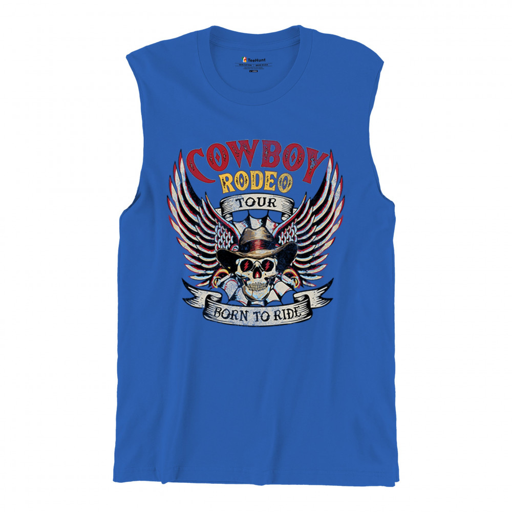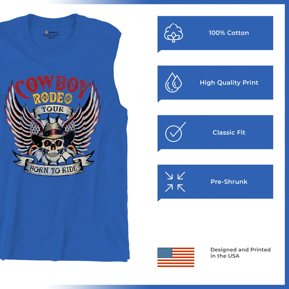 Cowboy Rodeo Tour “Born to Ride†design with skull, wings, and western grit. Built for riders, rebels, and rodeo fans who live wild.