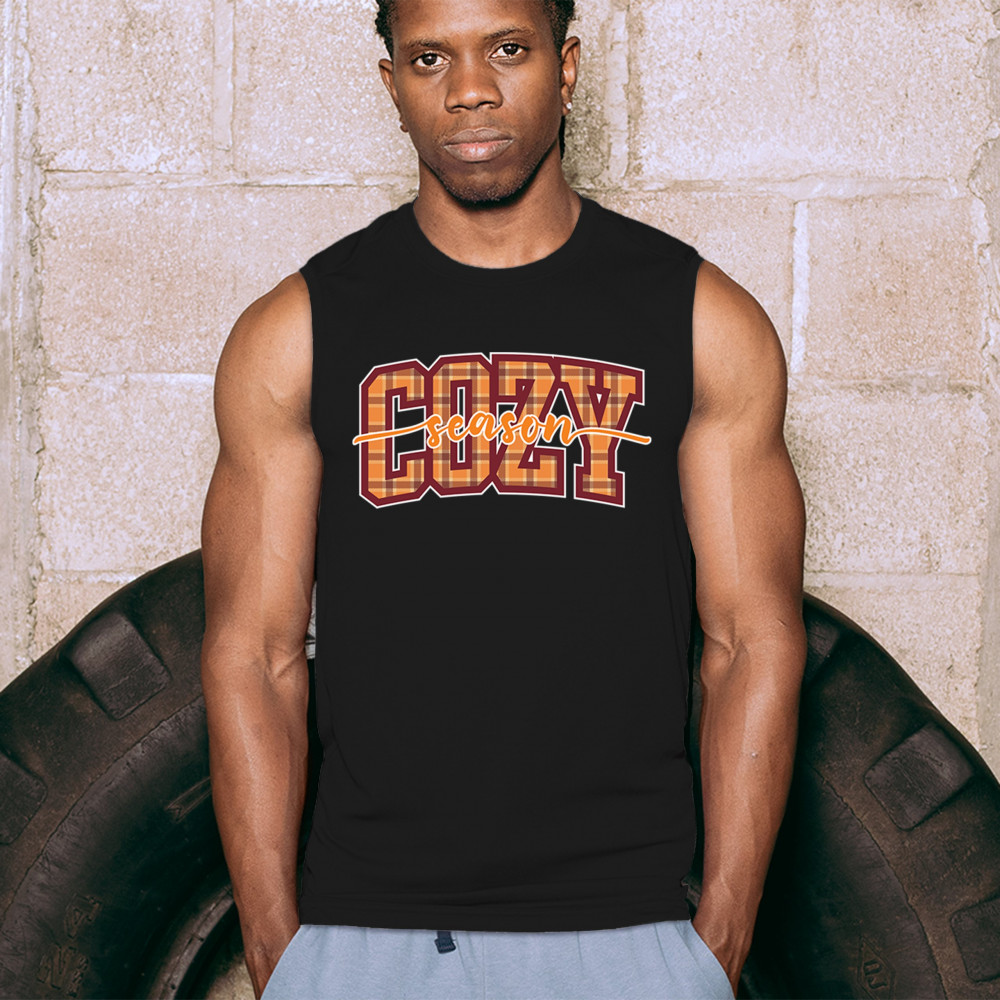 COZY SEASON muscle shirt fall pumpkin spice cute thanksgiving turkey day men's black
