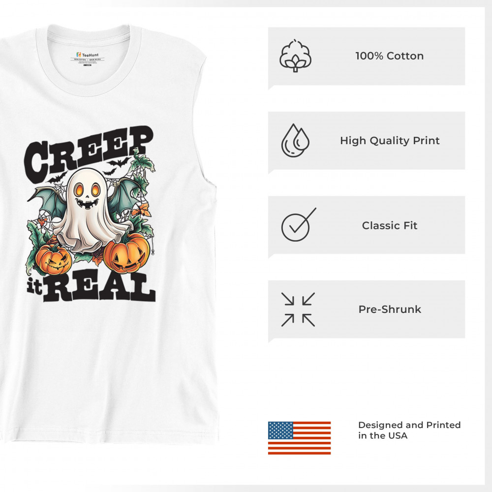 Celebrate Halloween with this playful "Creep It Real" ghost design, perfect for fall activities, pumpkin patches, and spooky parties!