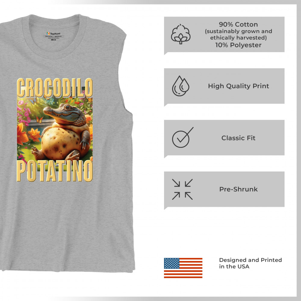 Crocodilo Potatino fuses cursed-core humor, animal mashup memes, TikTok absurdity, weirdcore aesthetic, and Gen Z viral fashion.