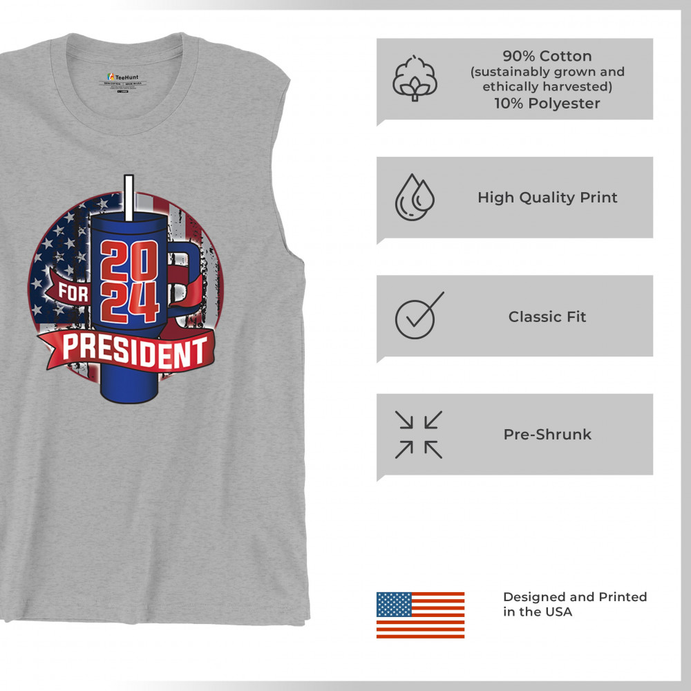 Parody the 2024 election with this humorous design inspired by the popular water bottle craze. Perfect for political satire fans and social gatherings.