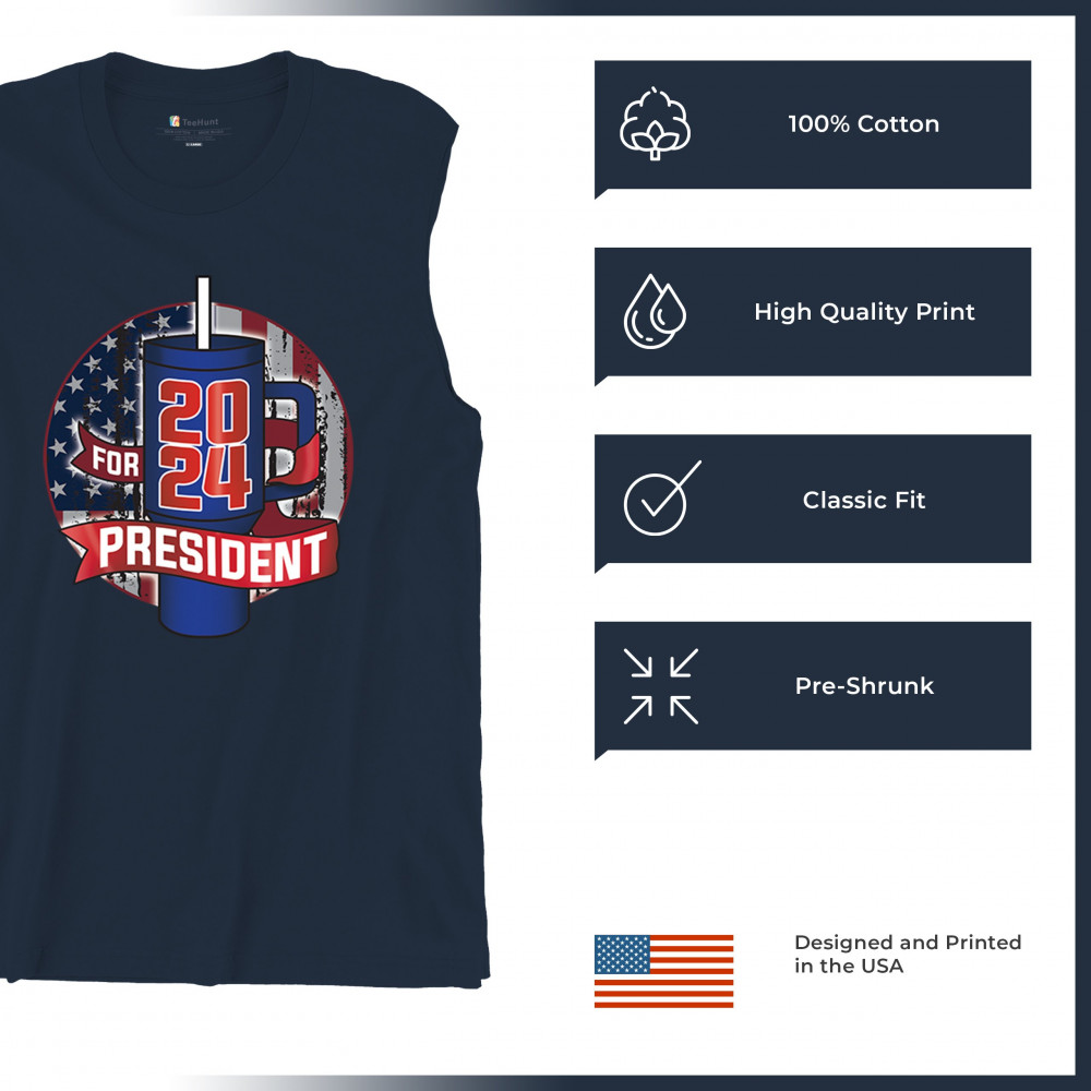 Celebrate the 2024 election season with a touch of humor with this clever design that parodies the popular water bottle craze. Perfect for those who enjoy political satire and want to make a statement, this design is ideal for casual wear, political rallies, and social gatherings. Show off your witty side with this playful and eye-catching graphic, and get ready to spark conversations and laughter wherever you go.