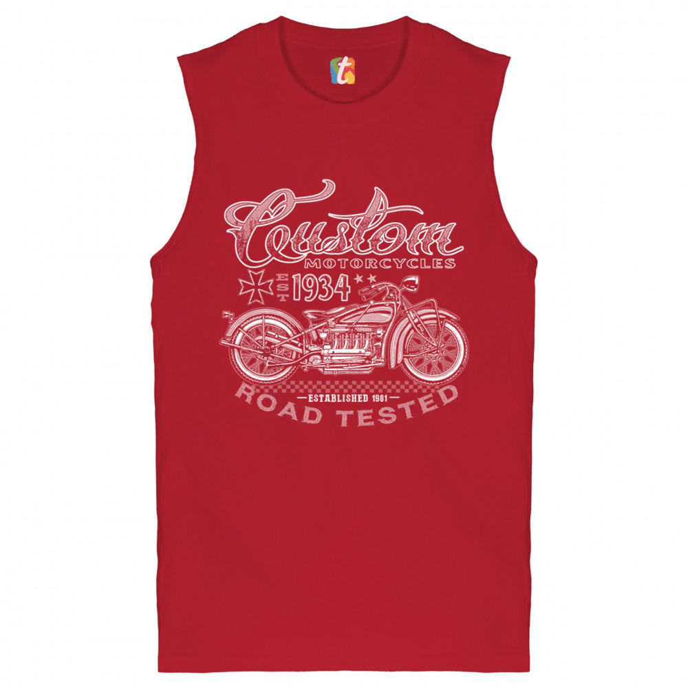CUSTOM MOTORCYCLES ROAD TESTED muscle shirt bobber biker gang mc men's red