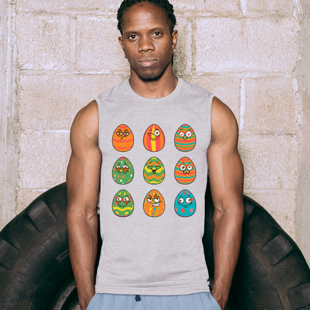 CUTE EASTER EGGS muscle shirt jesus has risen happy easter egg hunt men's gray