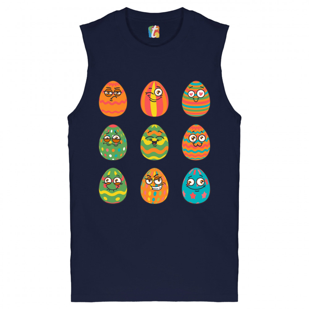 CUTE EASTER EGGS muscle shirt jesus has risen happy easter egg hunt men's navy blue
