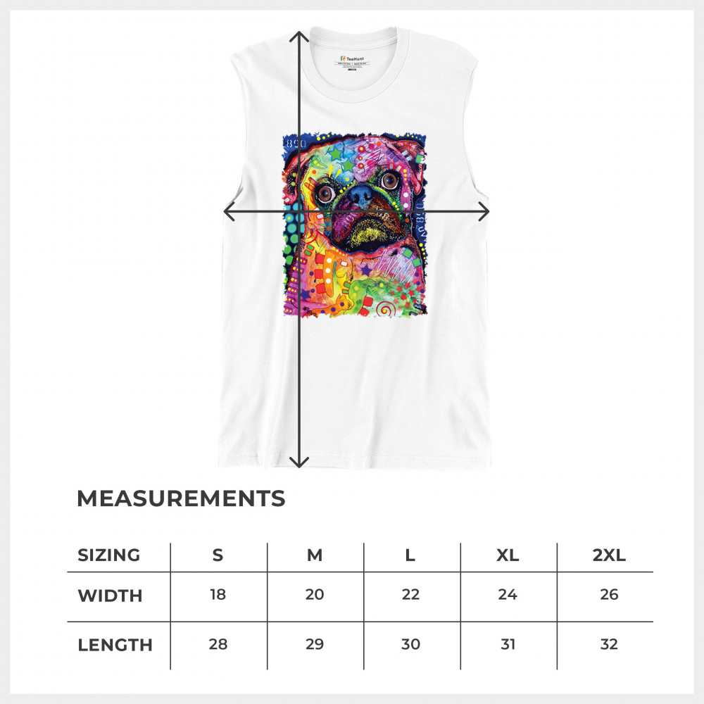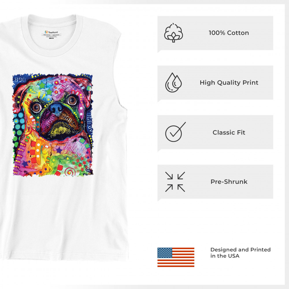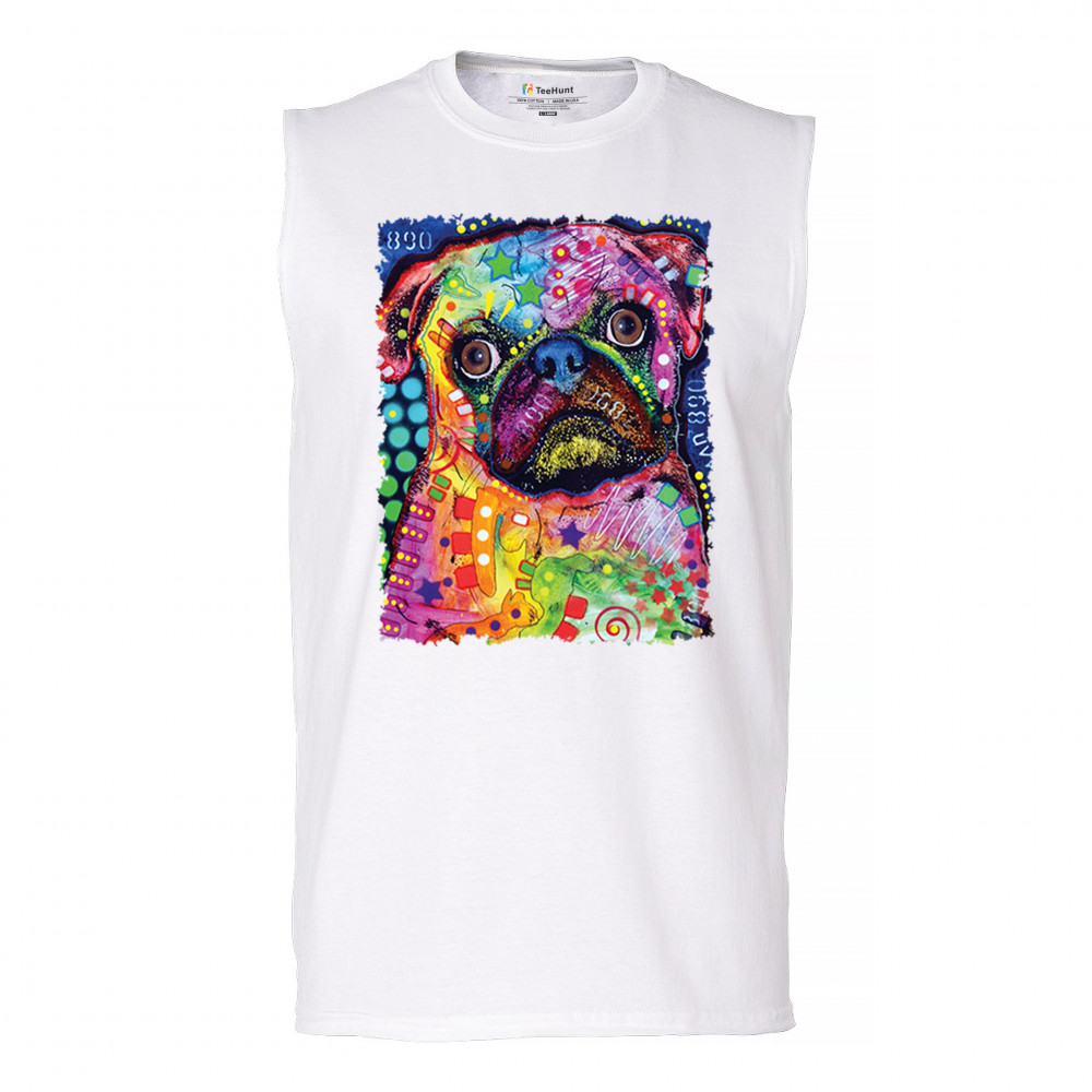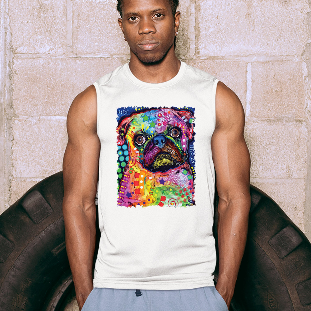 CUTE PUG PUPPY muscle shirt dean russo colorful neon mosaic dog art men's white