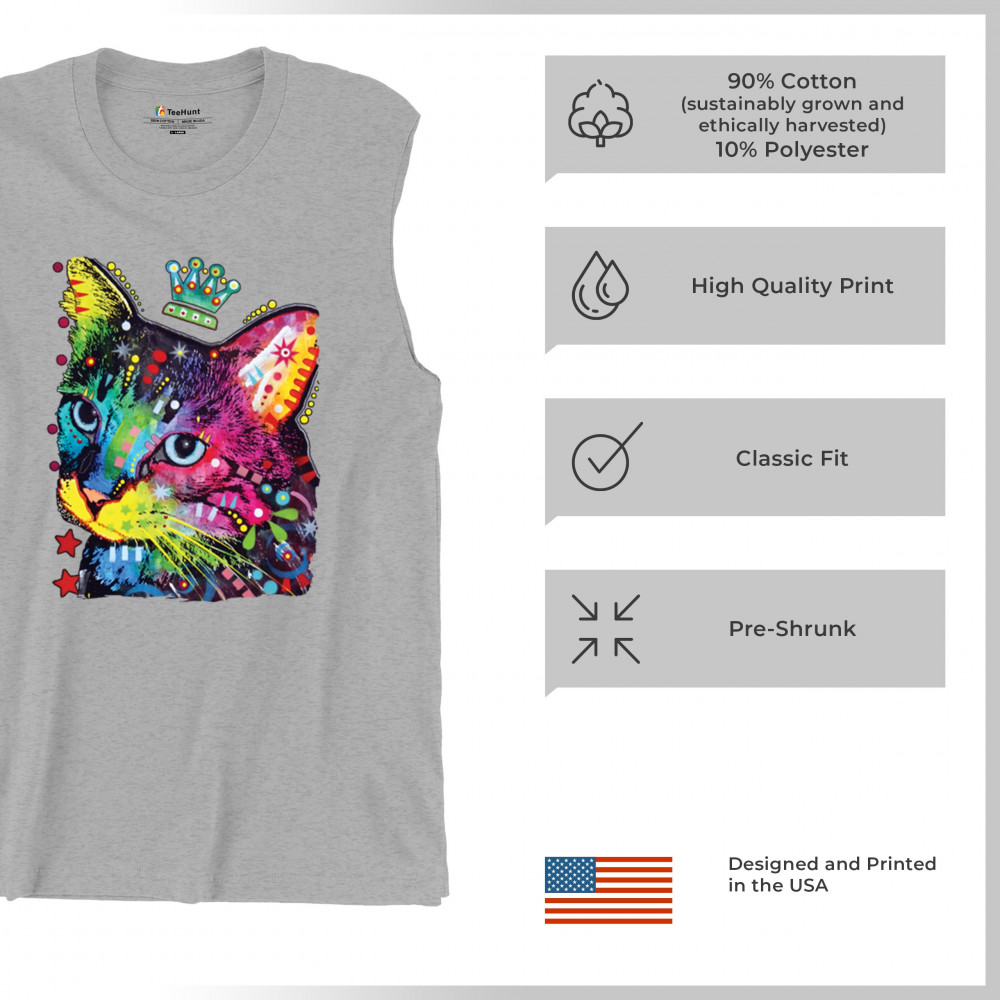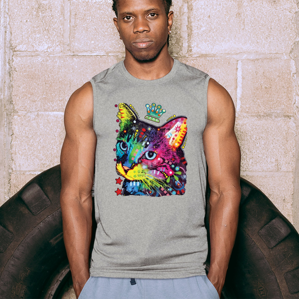 CUTE THINKING CROWNED CAT muscle shirt dean russo colorful kitten men's gray
