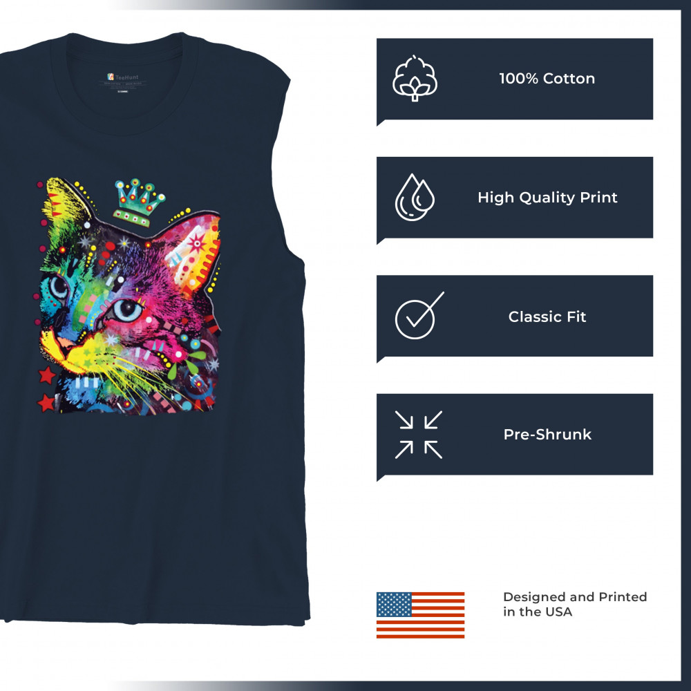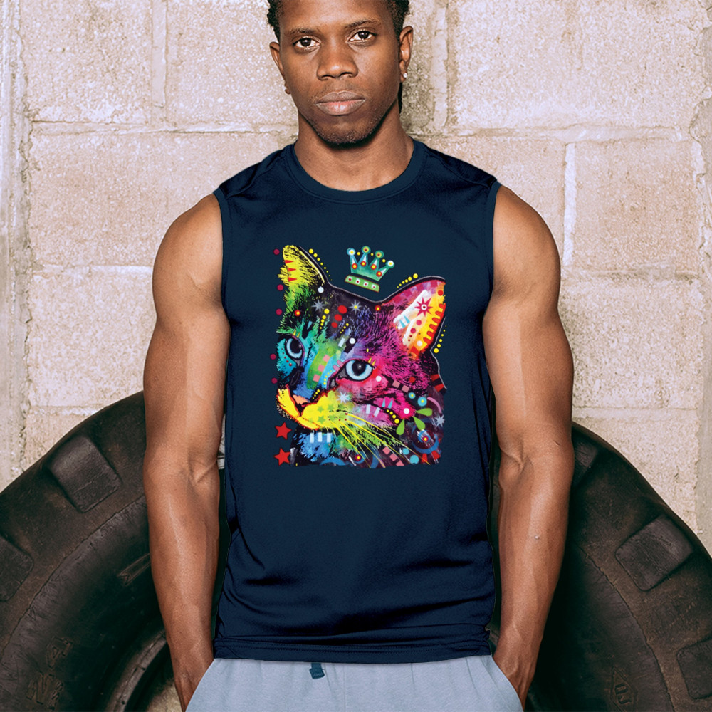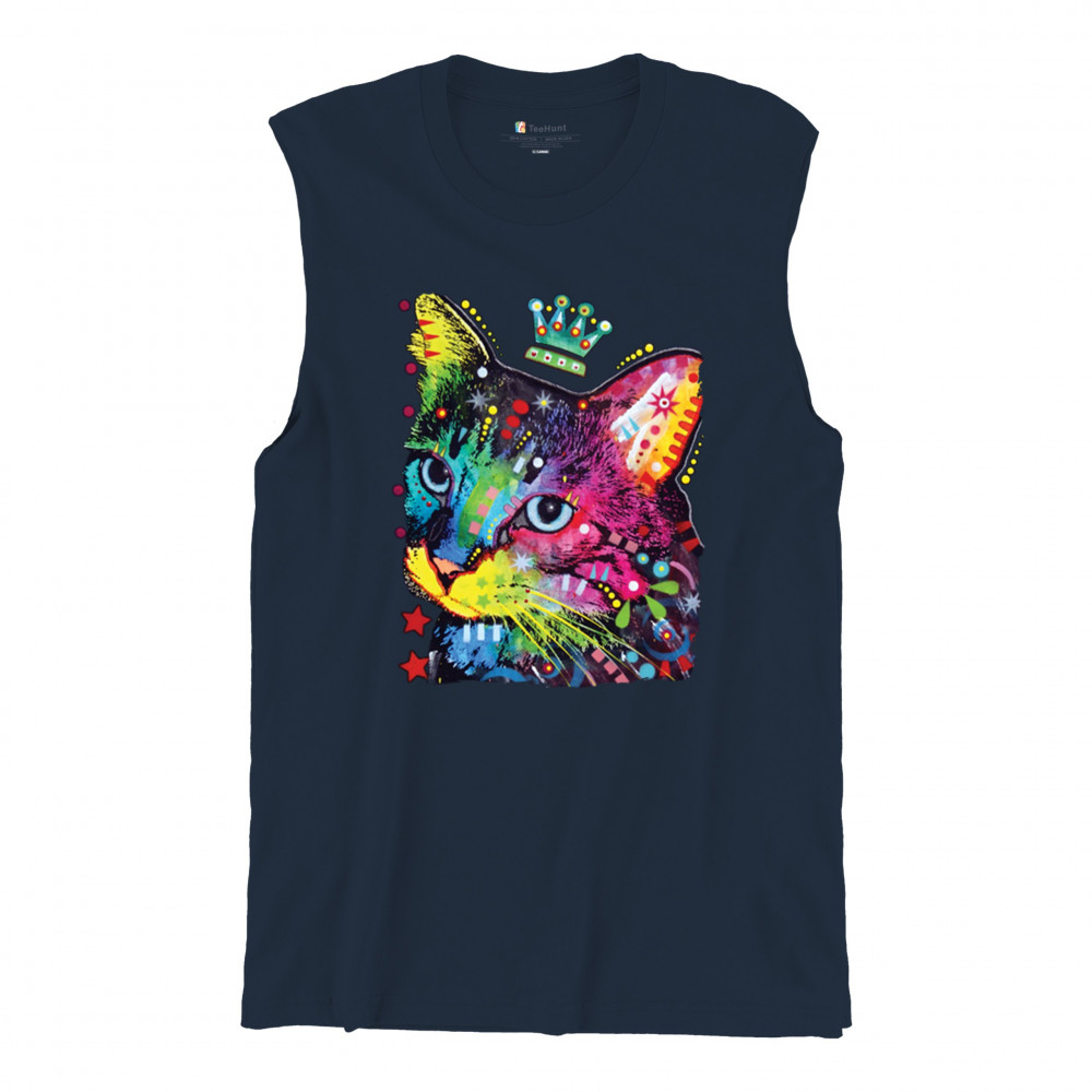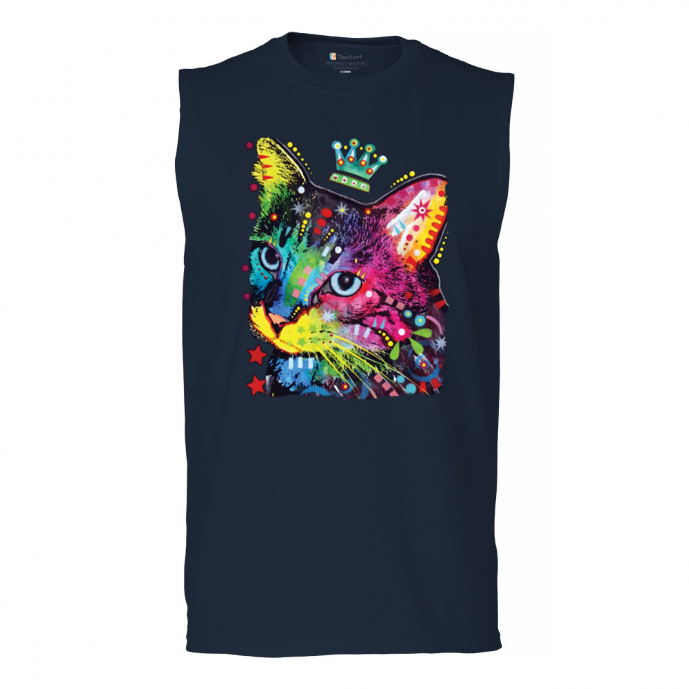 CUTE THINKING CROWNED CAT muscle shirt dean russo colorful kitten men's navy blue