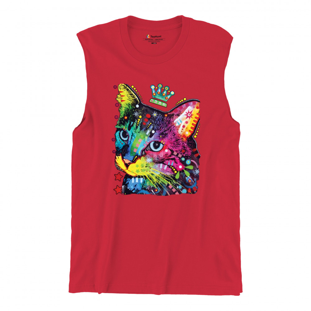 CUTE THINKING CROWNED CAT muscle shirt dean russo colorful kitten men's red