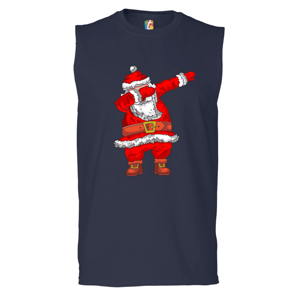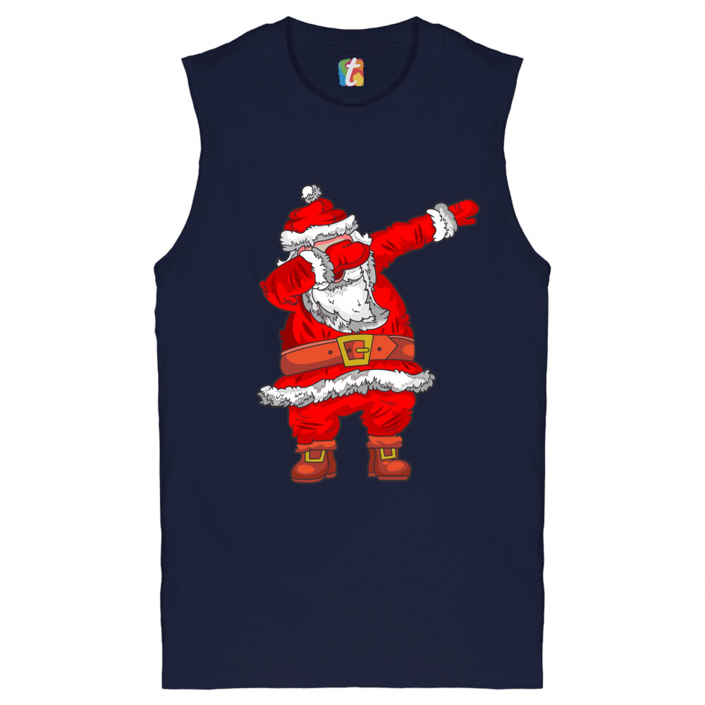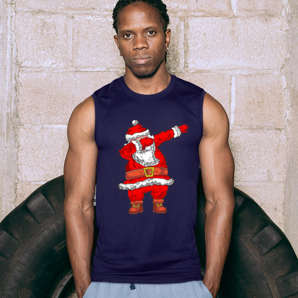 DABBING SANTA CLAUS muscle shirt merry christmas funny dab dance x-mas men's navy blue
