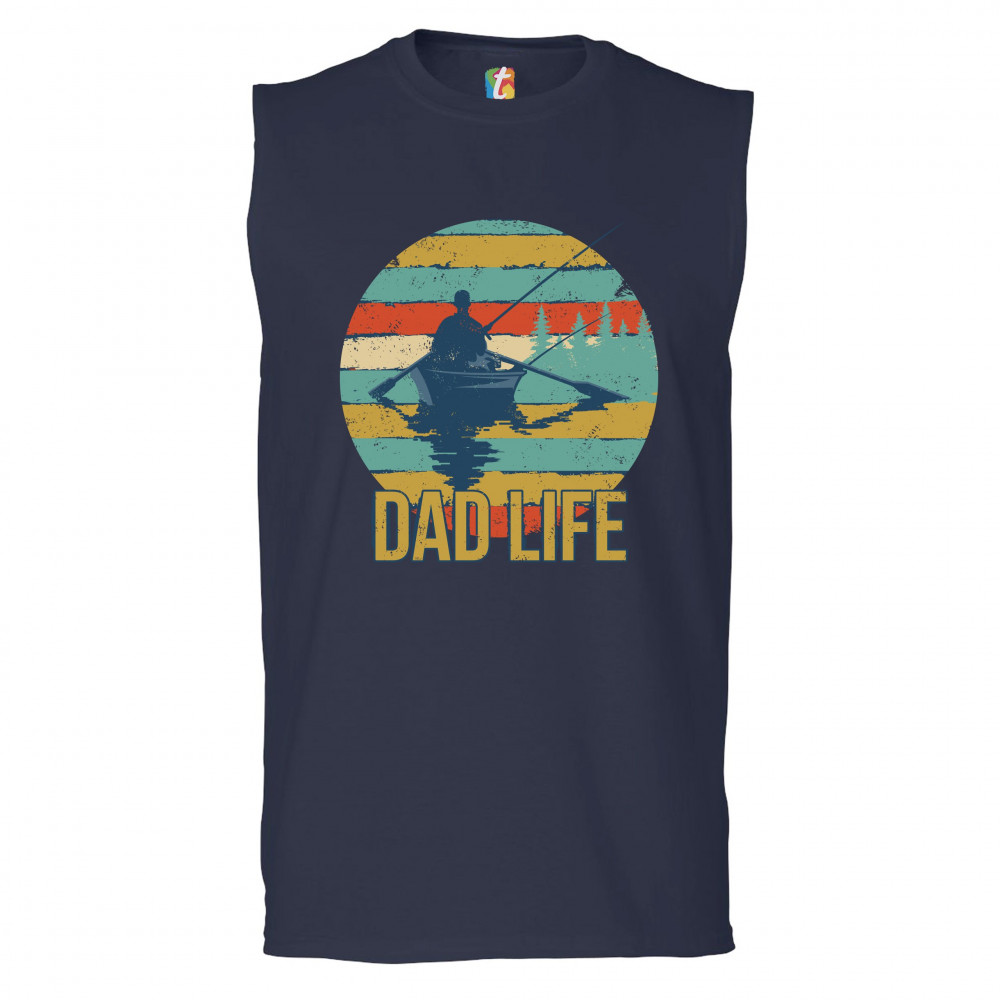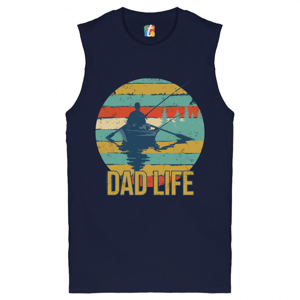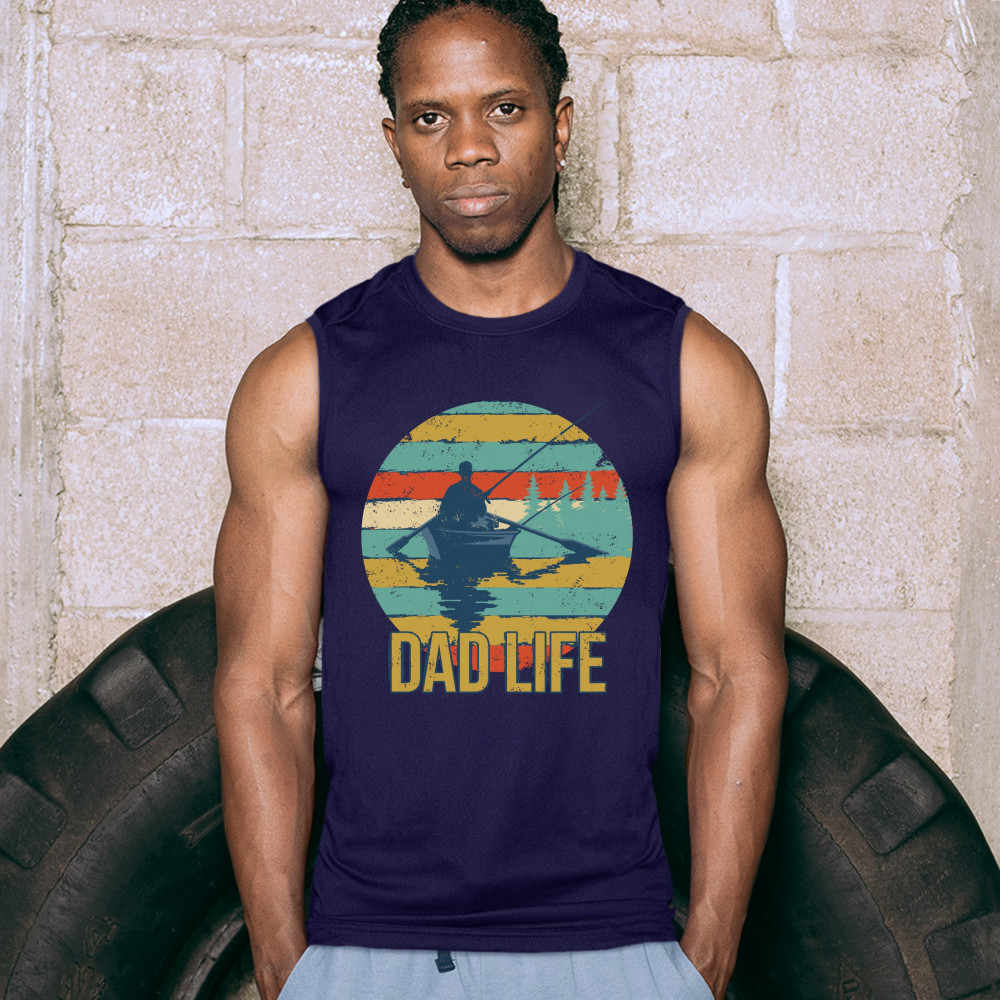 DAD LIFE muscle shirt fatherhood outdoorsman fishing father's day men's navy blue