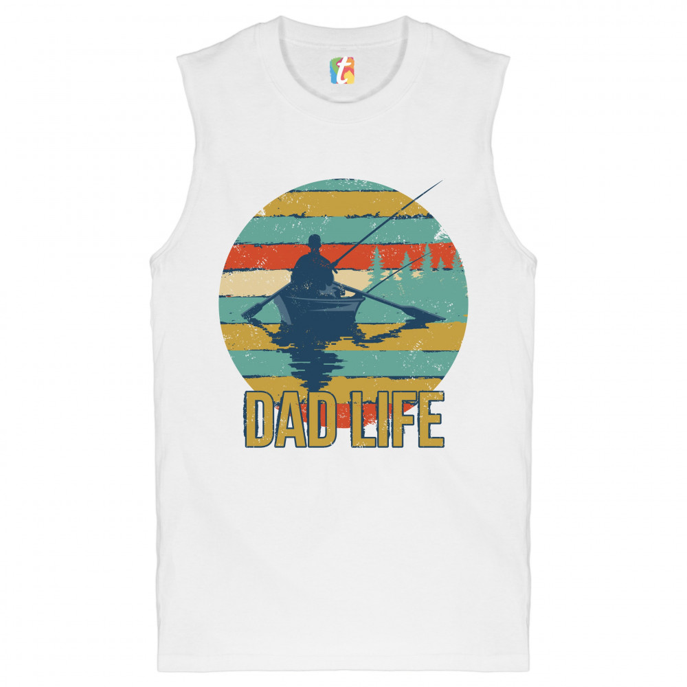 DAD LIFE muscle shirt fatherhood outdoorsman fishing father's day men's white