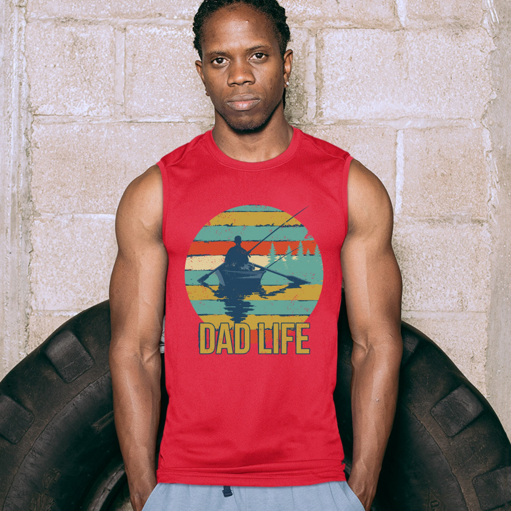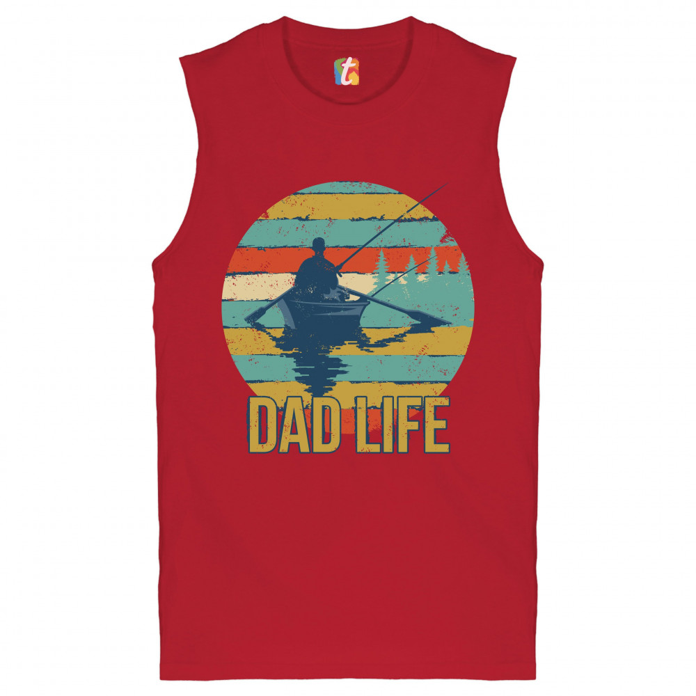 DAD LIFE muscle shirt fatherhood outdoorsman fishing father's day men's red