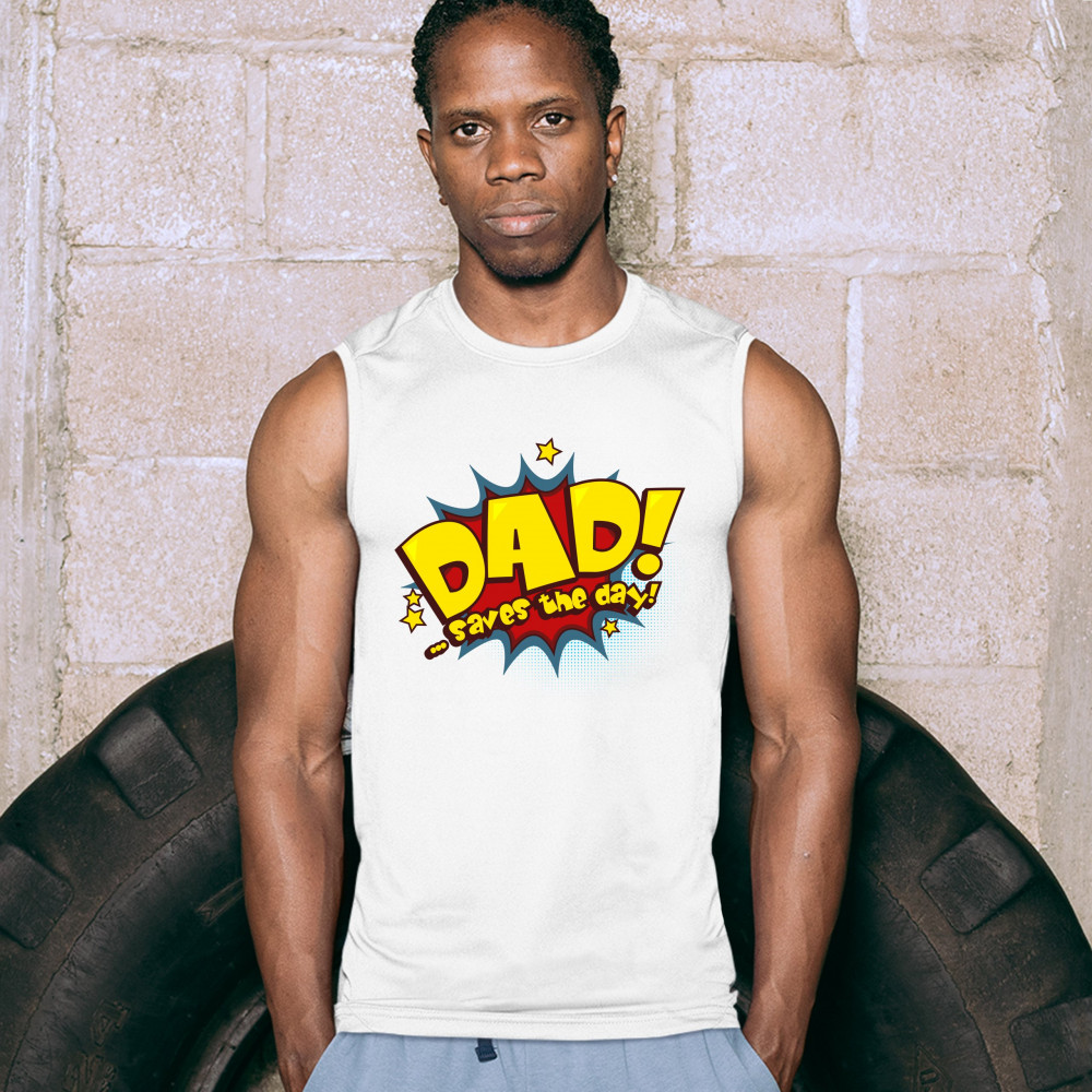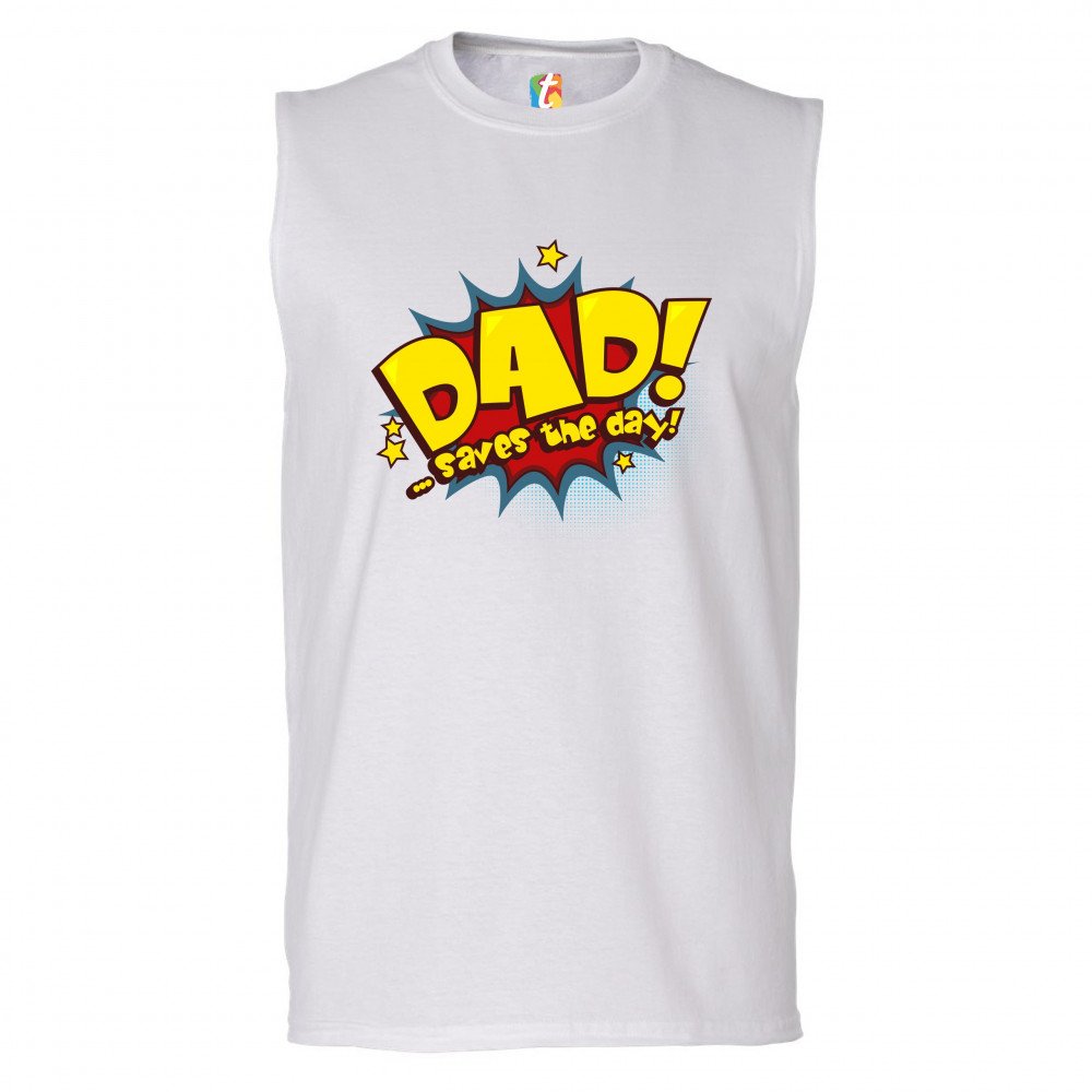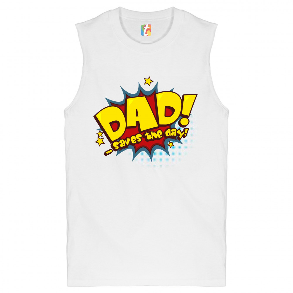 DAD SAVES THE DAY! muscle shirt father's day world's greatest dad men's white