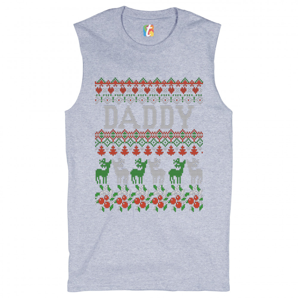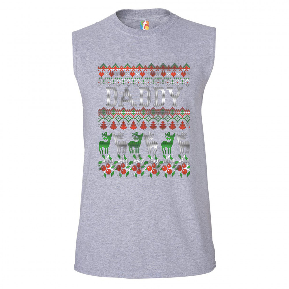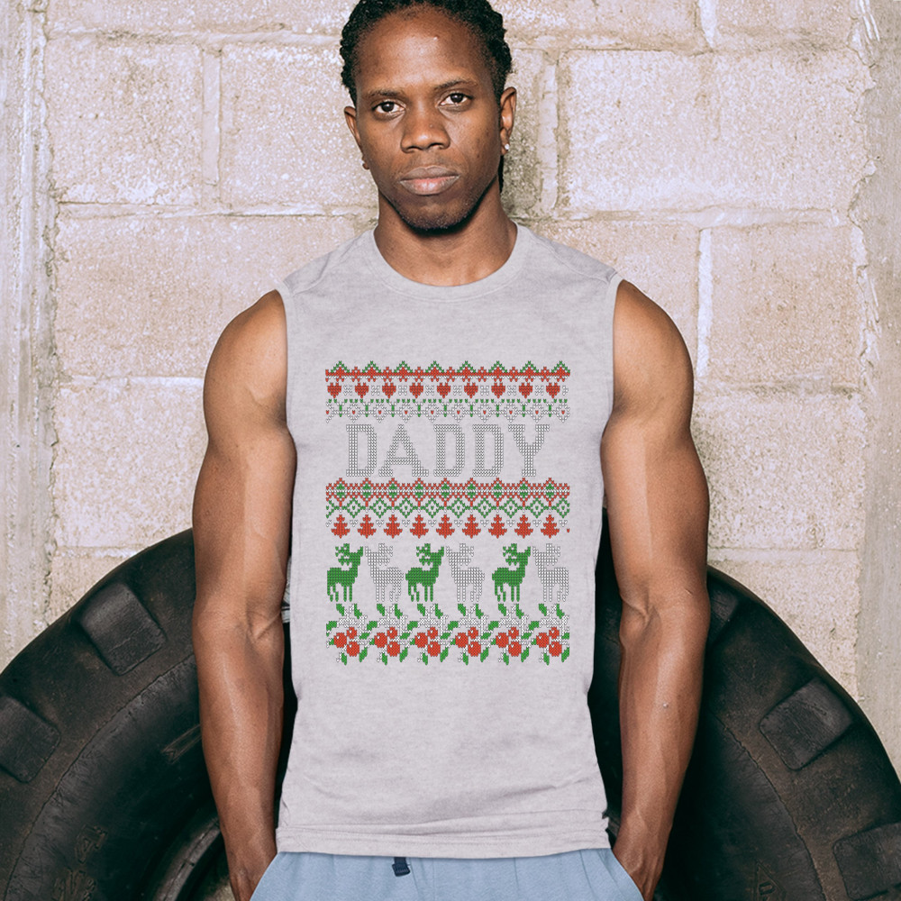 DADDY muscle shirt merry christmas ugly sweatshirt reindeer rudolph men's gray