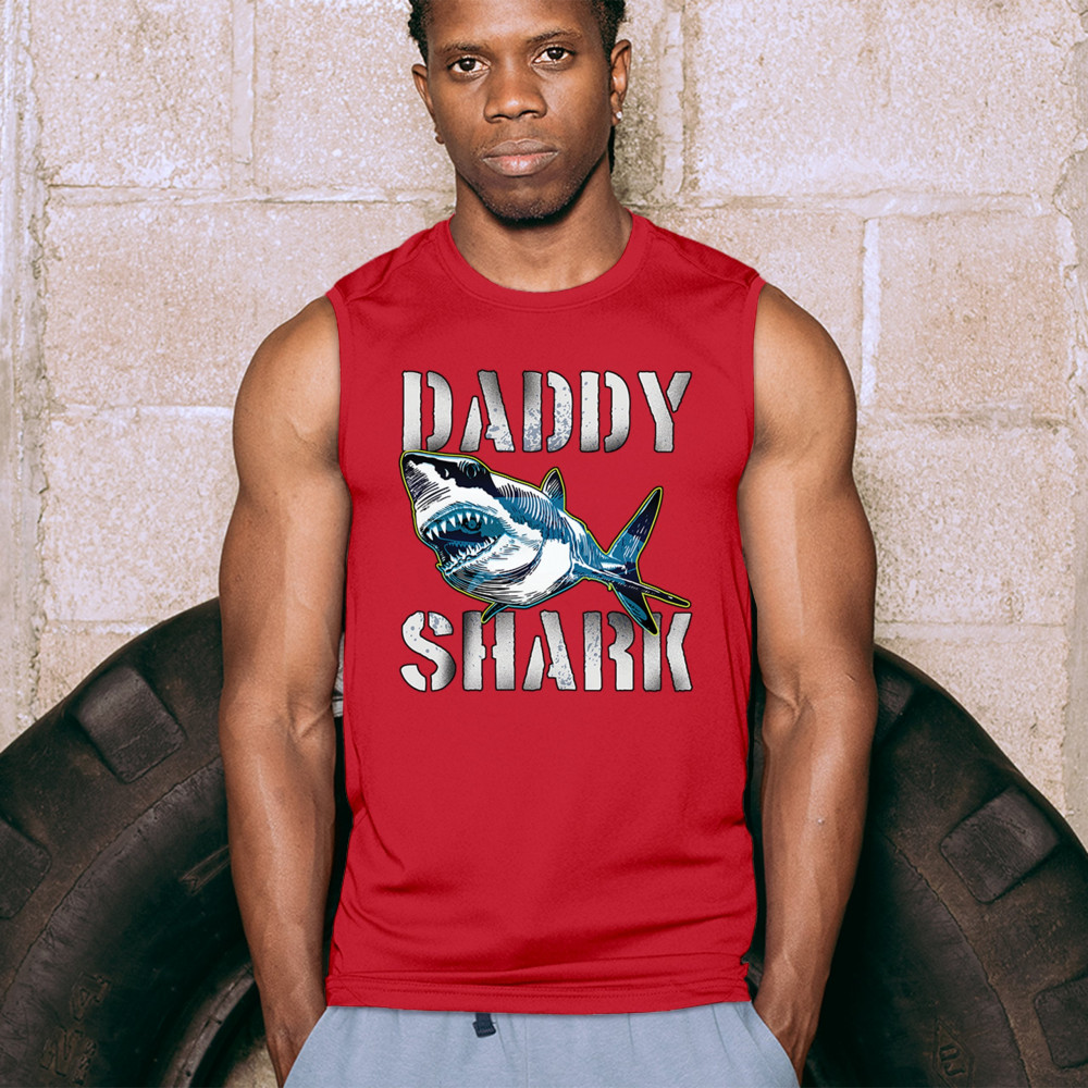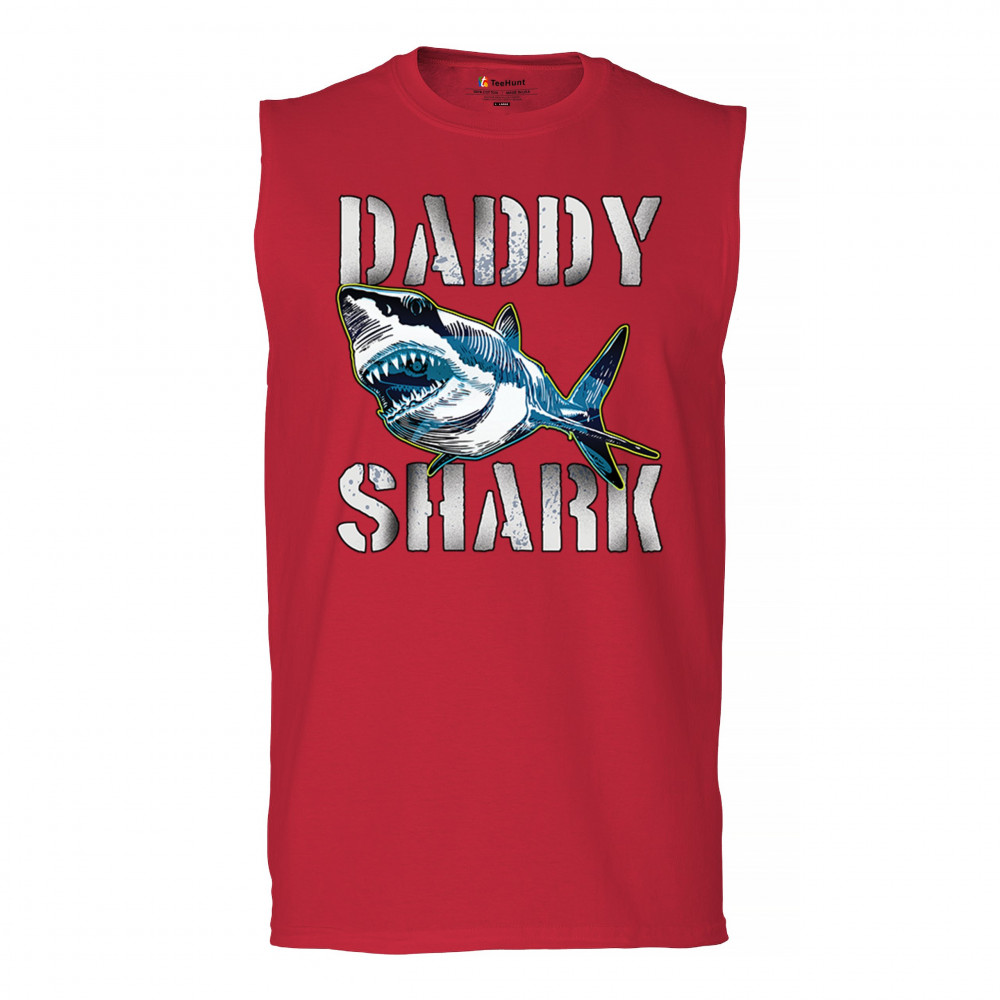 DADDY SHARK FUNNY FATHER'S DAY muscle shirt funny dad joke grandpa papa men's red