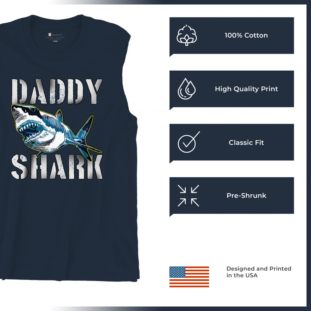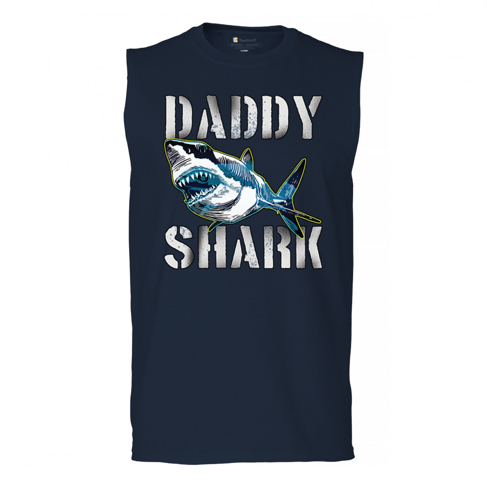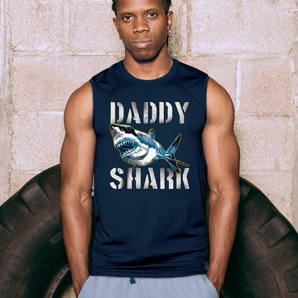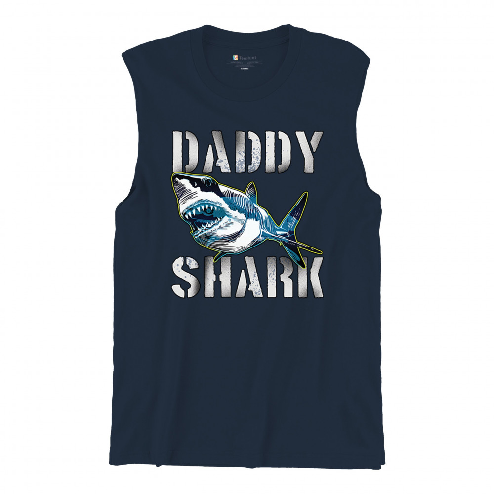 DADDY SHARK FUNNY FATHER'S DAY muscle shirt funny dad joke grandpa papa men's navy blue