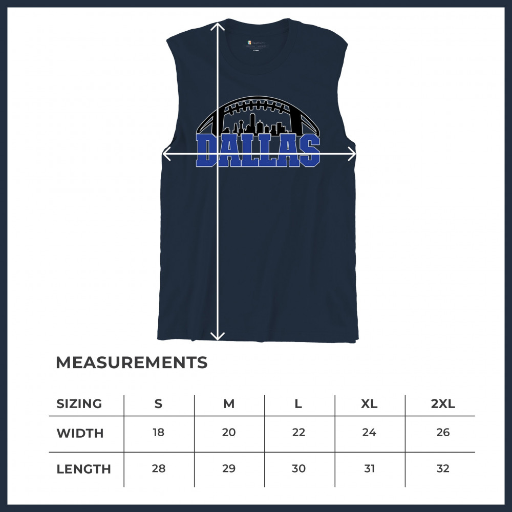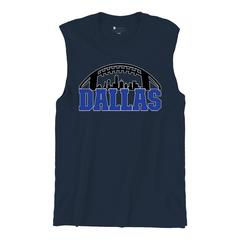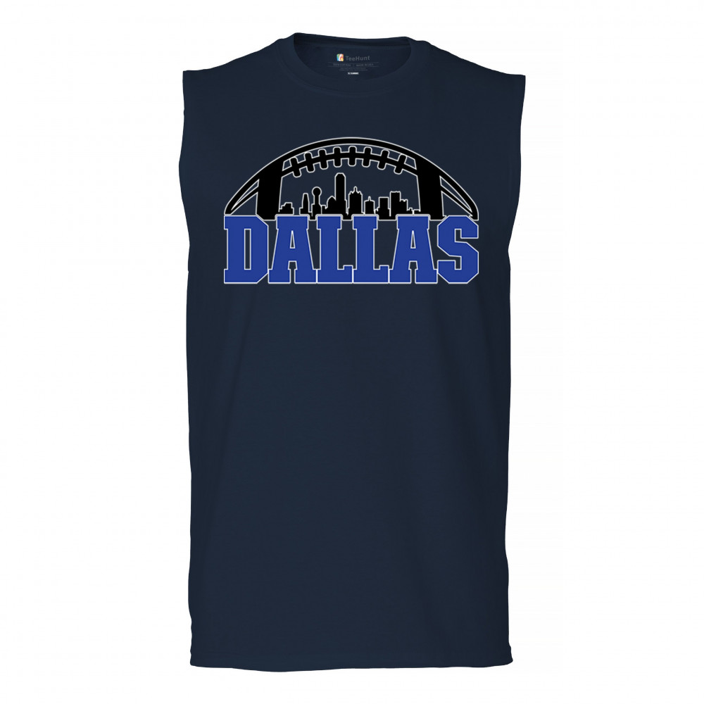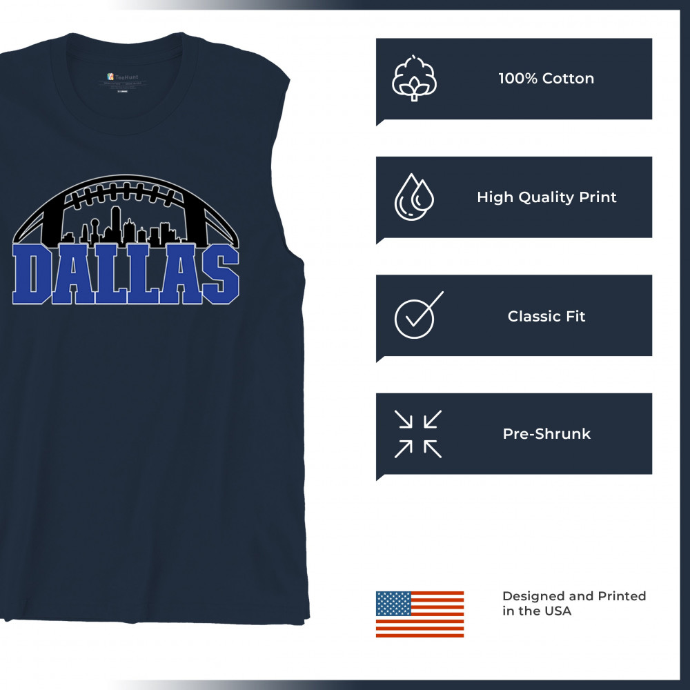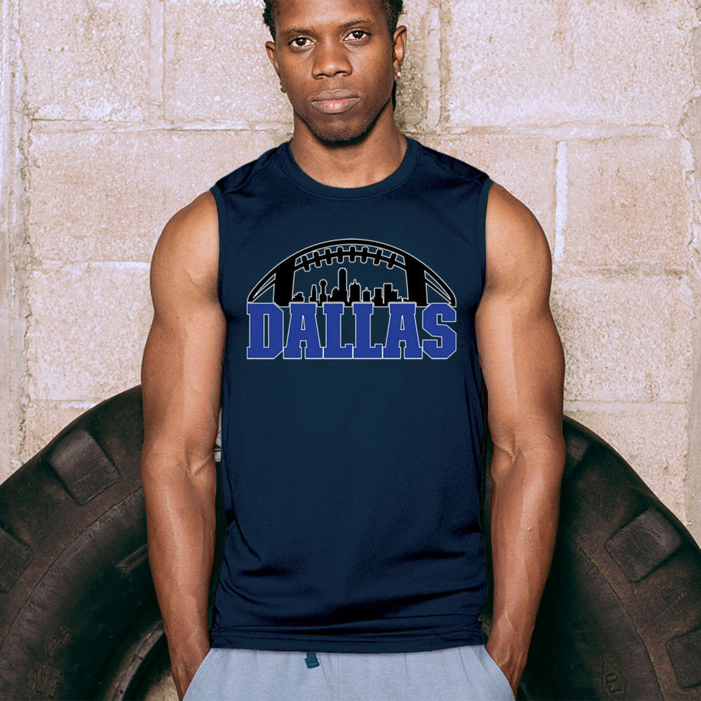 Show off your Dallas pride with a bold football-themed design featuring the city's skyline. Perfect for game days, tailgates, and passionate fans.