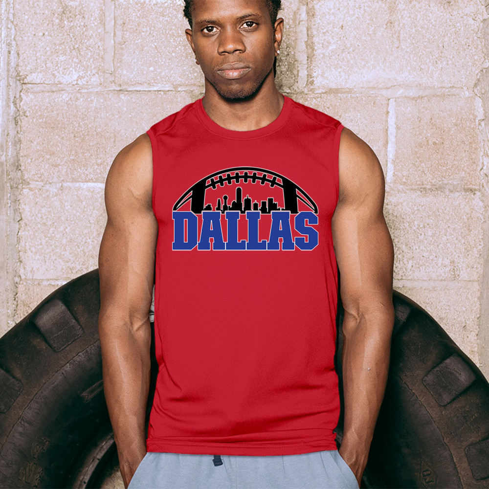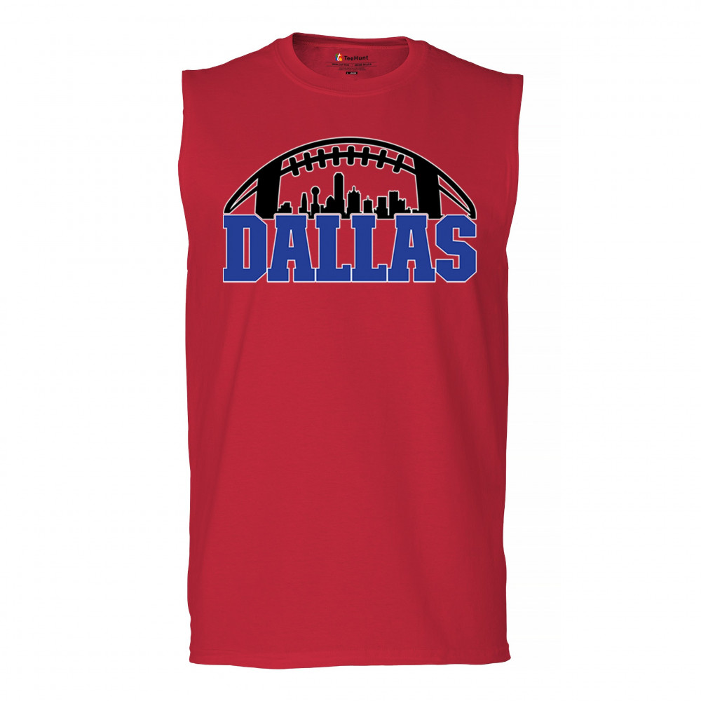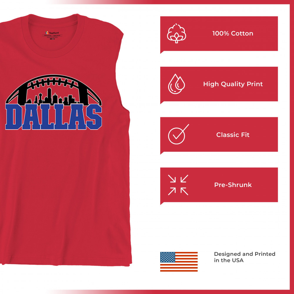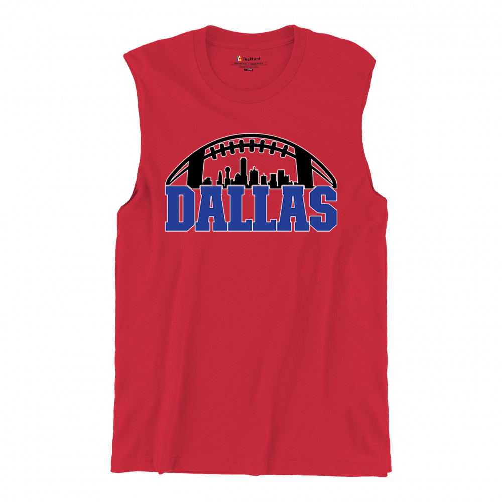 Show off your Dallas pride with a bold football-themed design featuring the city's skyline. Perfect for game days, tailgates, and passionate fans.