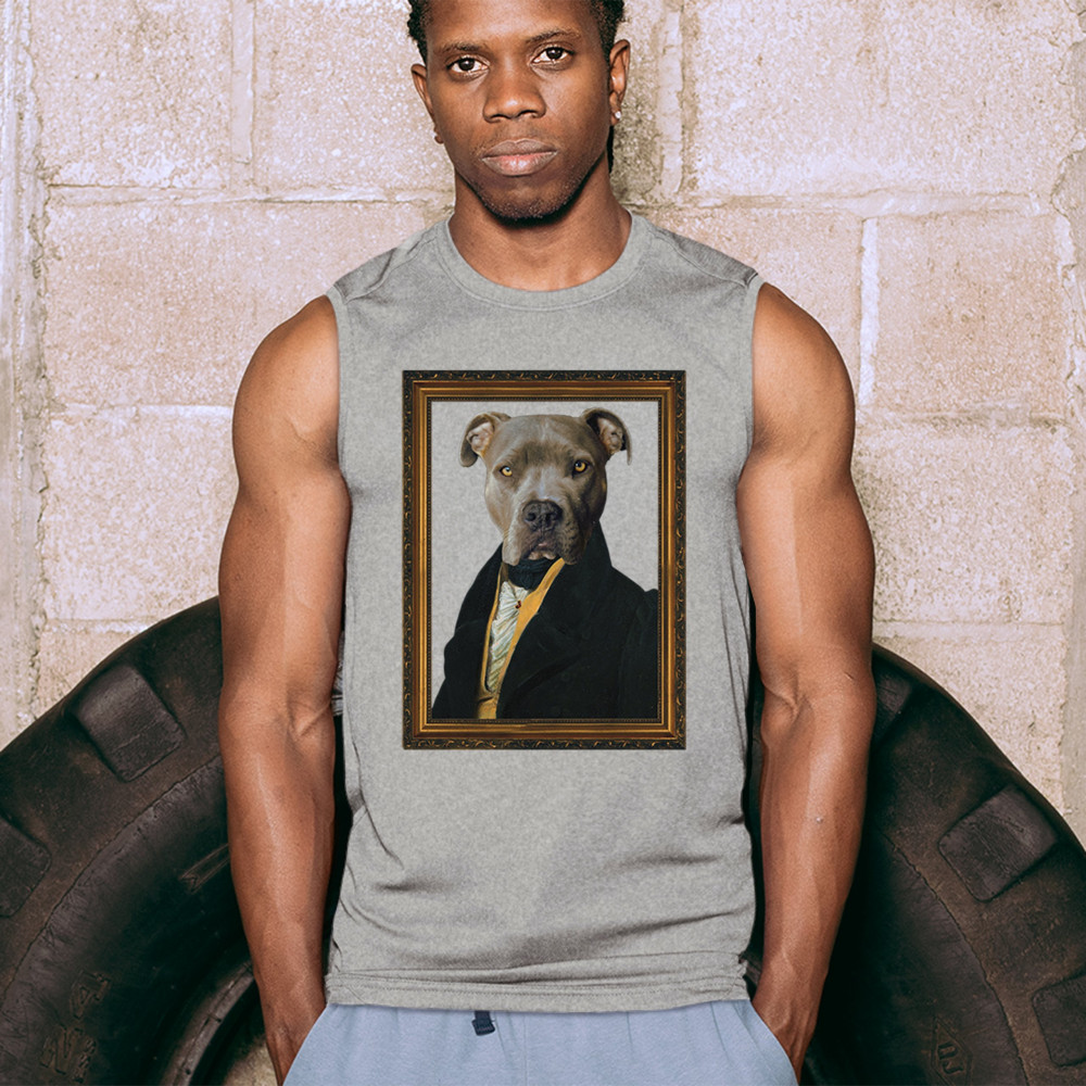 Unique pit bull portrait in 18th-century attire, blending humor and elegance for pet lovers and history enthusiasts. Perfect for home or office decor.