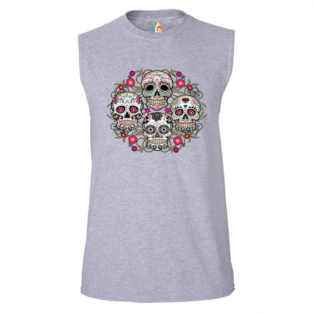 DAY OF THE DEAD FLORAL SUGAR SKULLS muscle shirt dia de los muertos men's gray