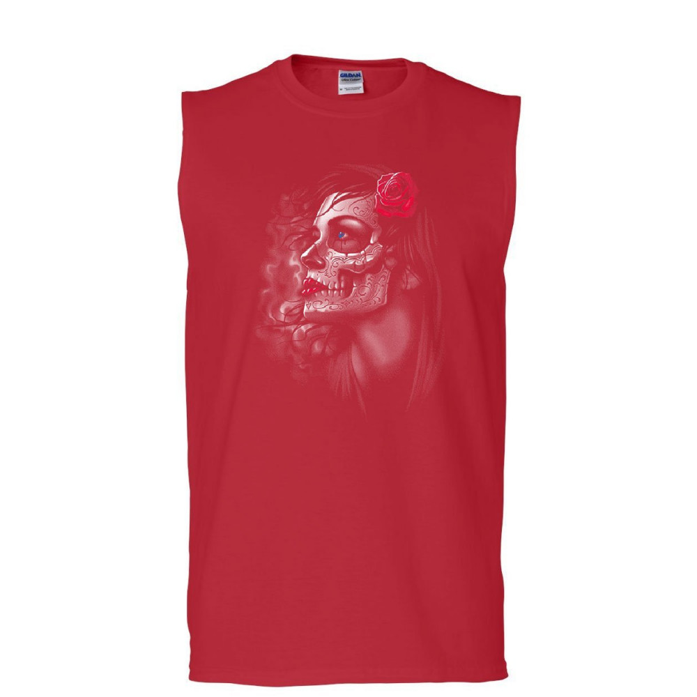 DAY OF THE DEAD GIRL muscle shirt skull face dia de los muertos roses sleeveless red