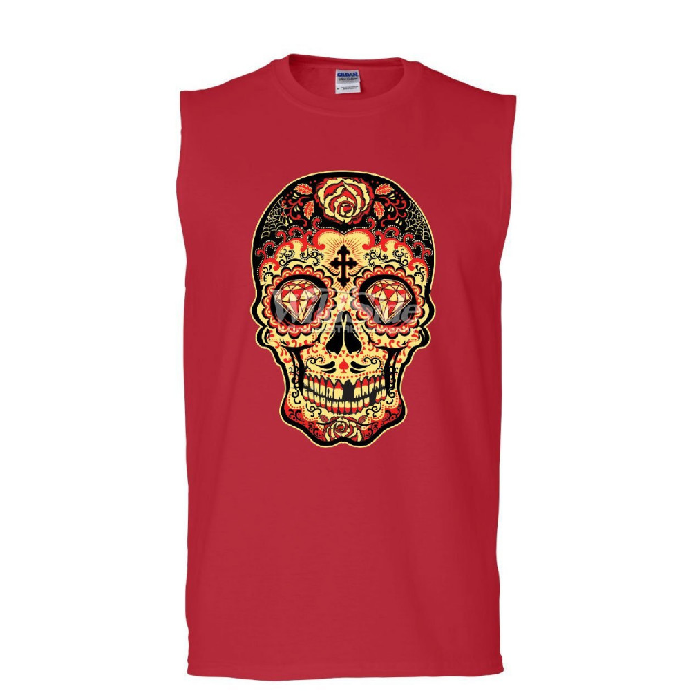 DAY OF THE DEAD SUGAR SKULL muscle shirt gold calavera dia de muertos sleeveless red