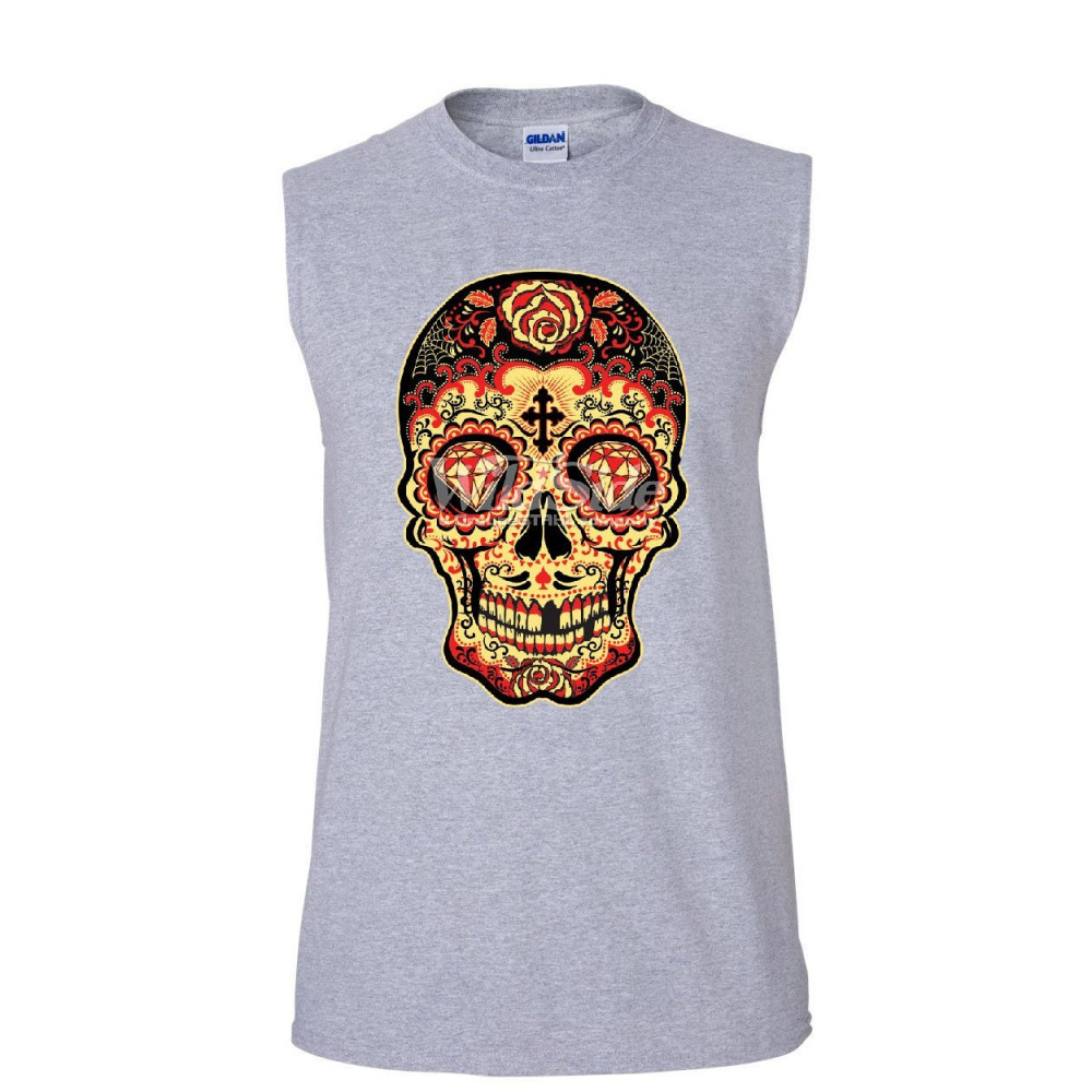 DAY OF THE DEAD SUGAR SKULL muscle shirt gold calavera dia de muertos sleeveless gray