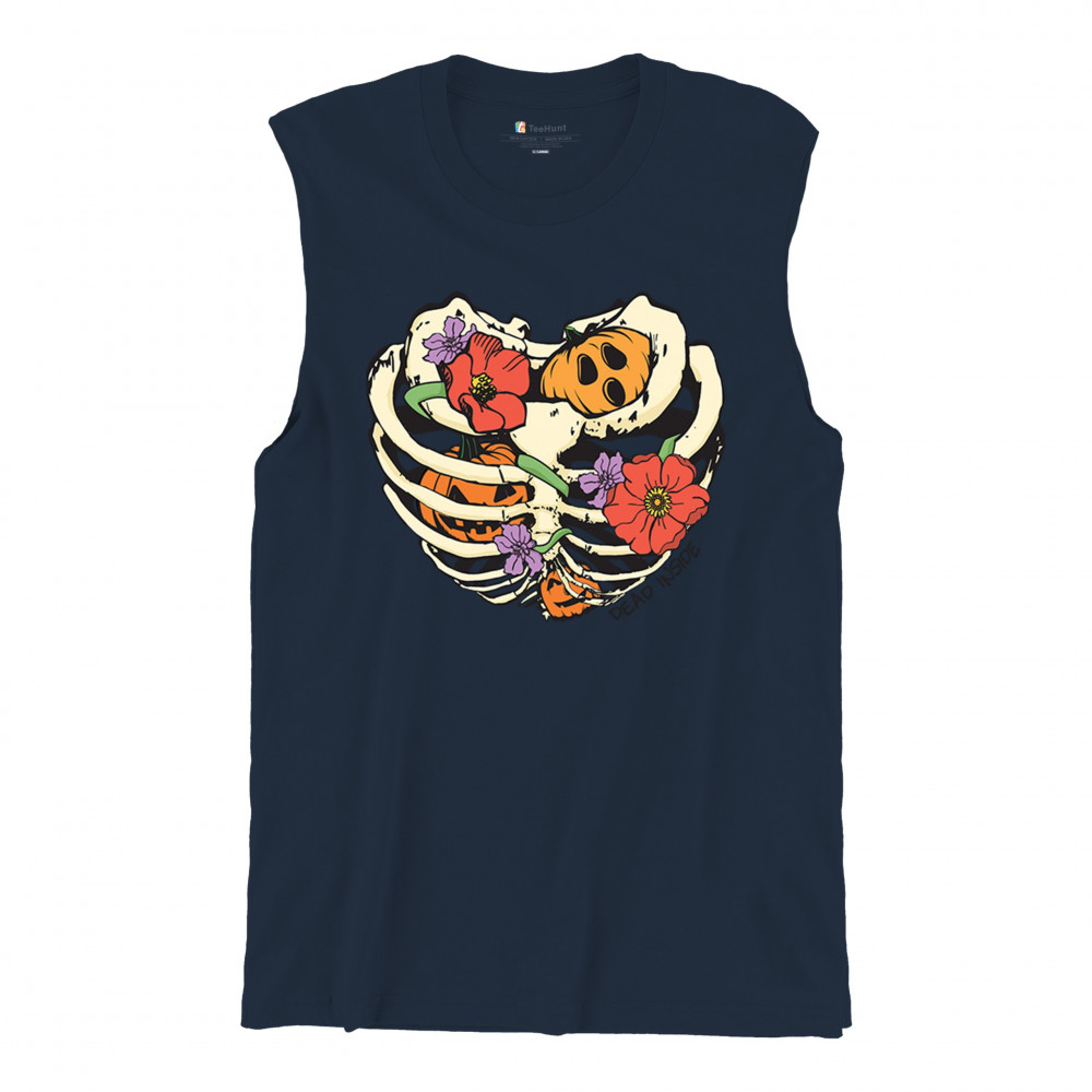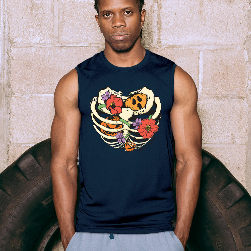 Celebrate Halloween with a quirky and cute design featuring a skeleton ribcage filled with pumpkins and flowers. Perfect for spooky season lovers!