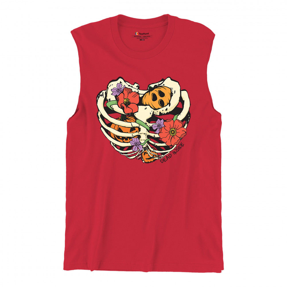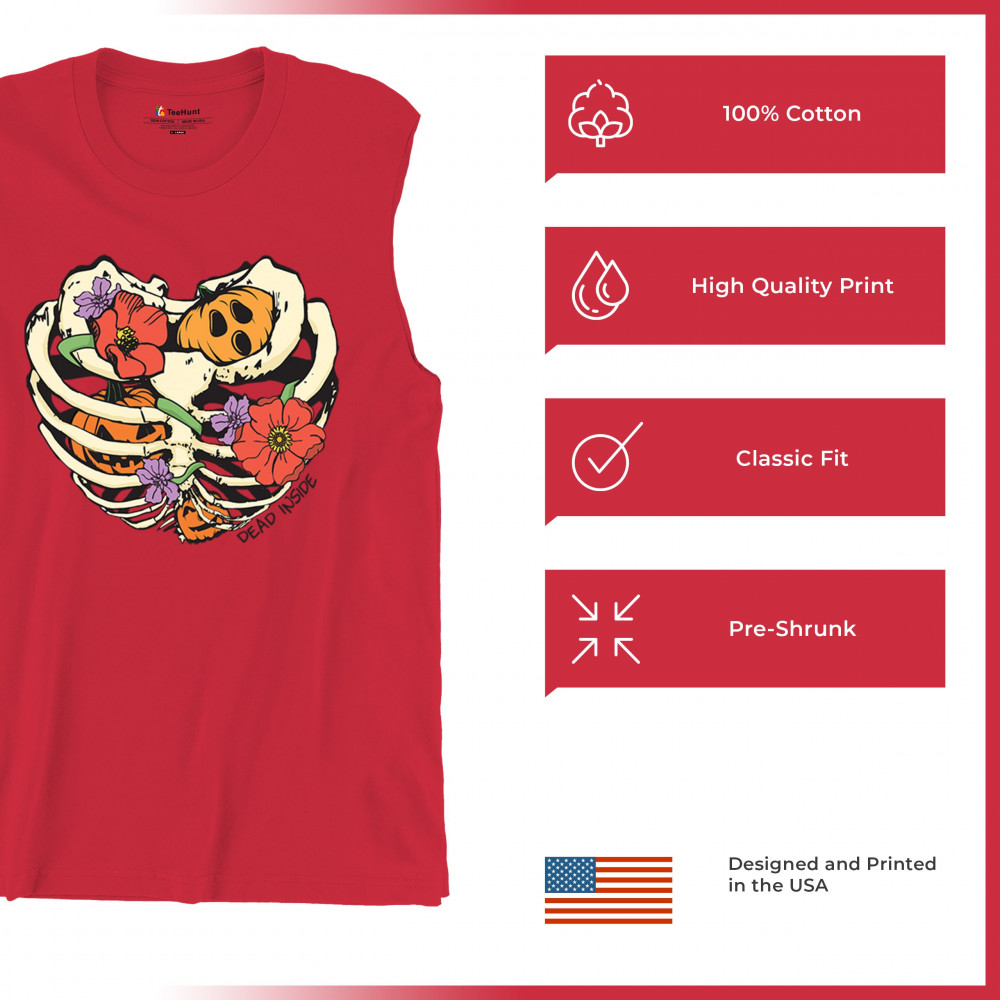 Celebrate Halloween with a quirky and cute design featuring a skeleton ribcage filled with pumpkins and flowers. Perfect for spooky season lovers!