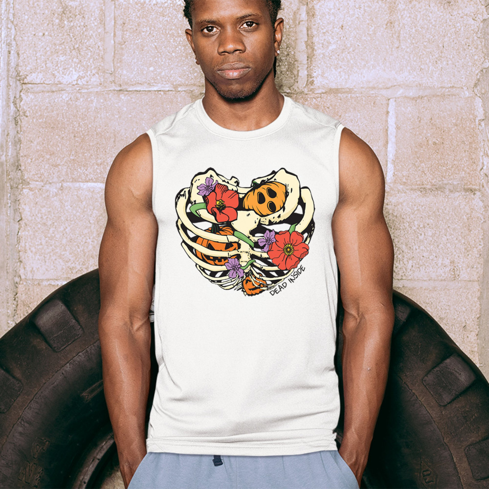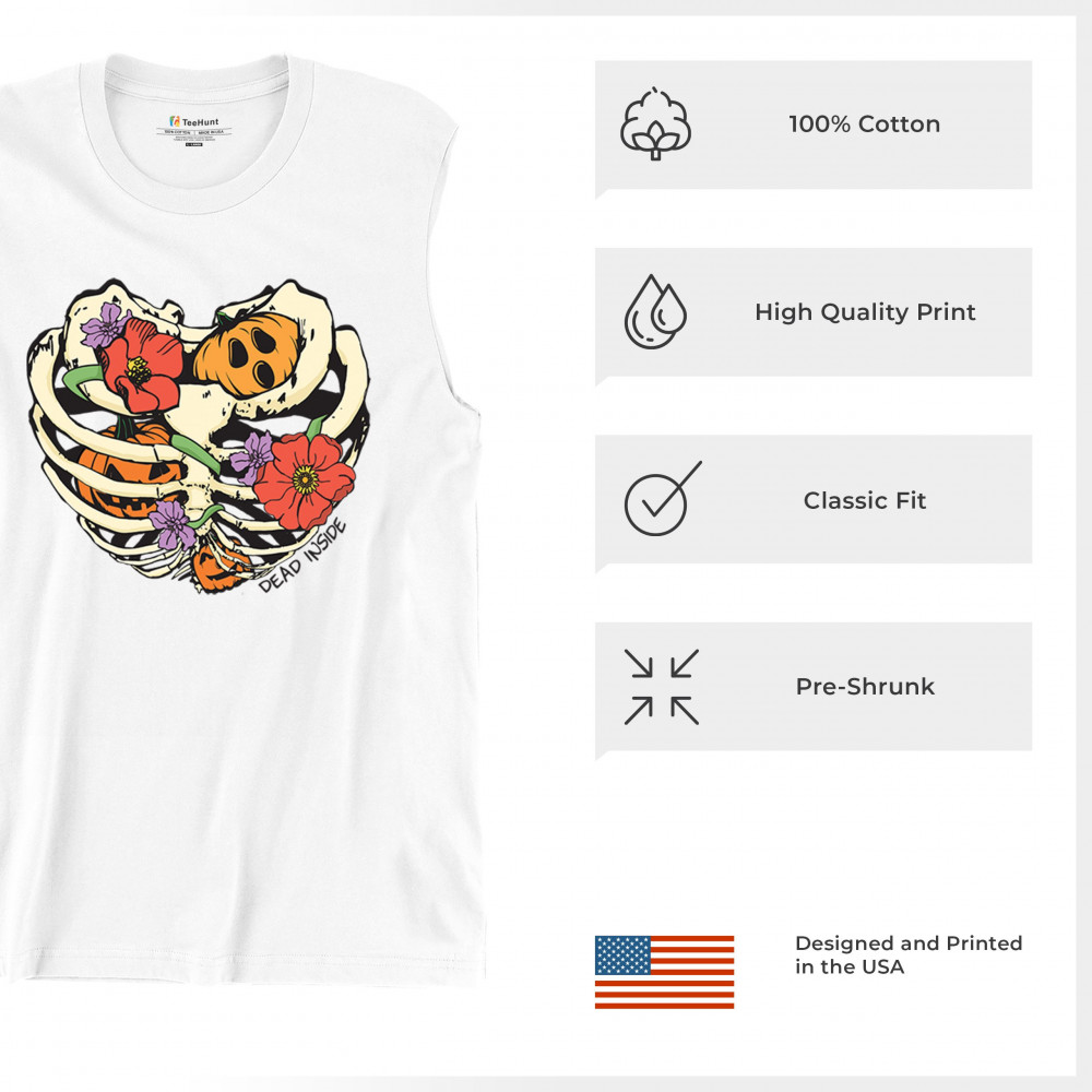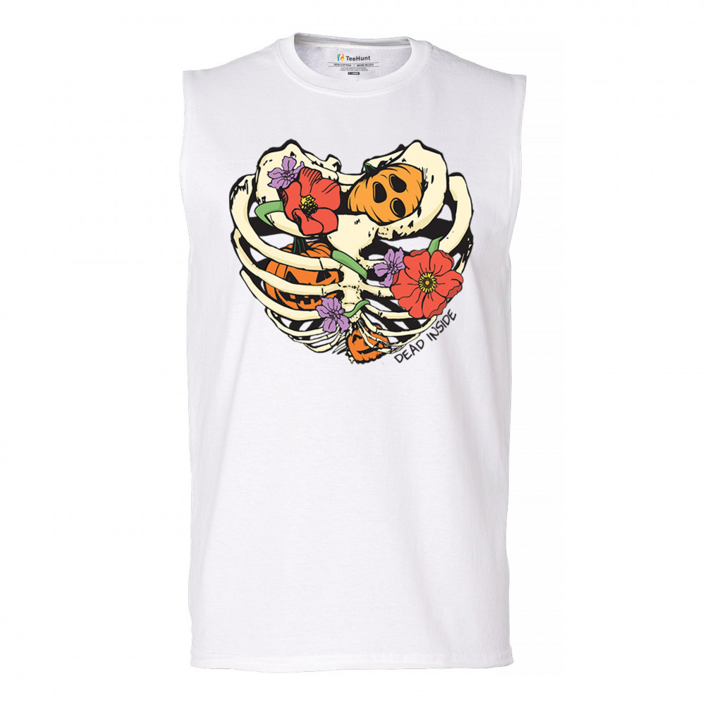 Celebrate Halloween with a quirky and cute design featuring a skeleton ribcage filled with pumpkins and flowers. Perfect for spooky season lovers!
