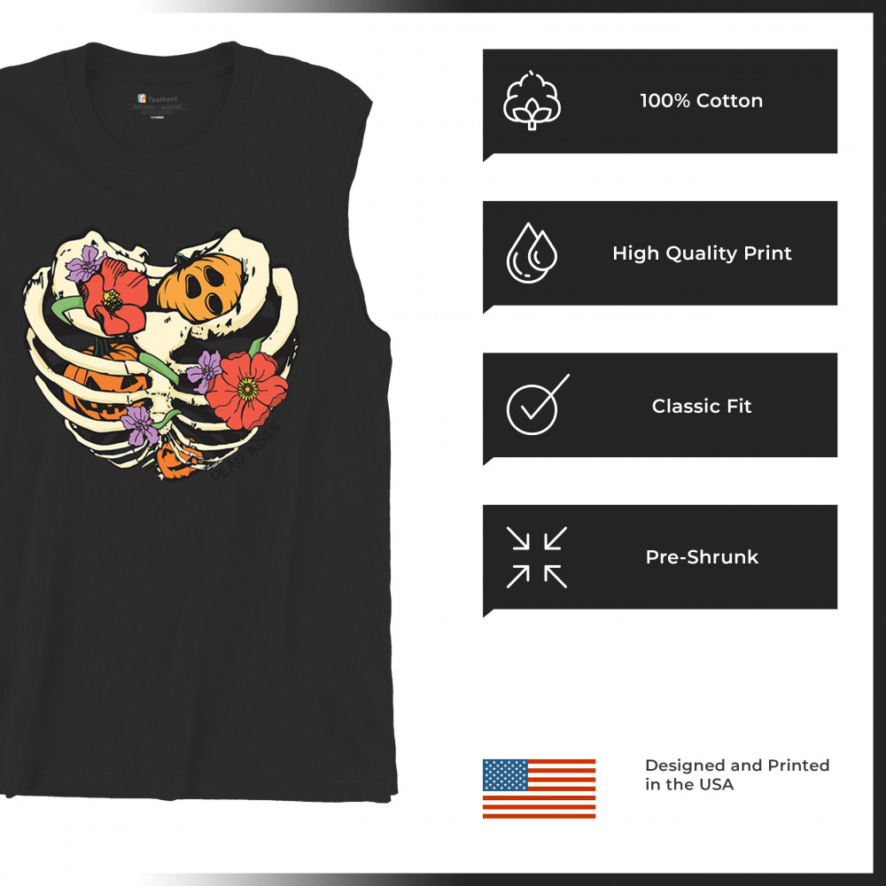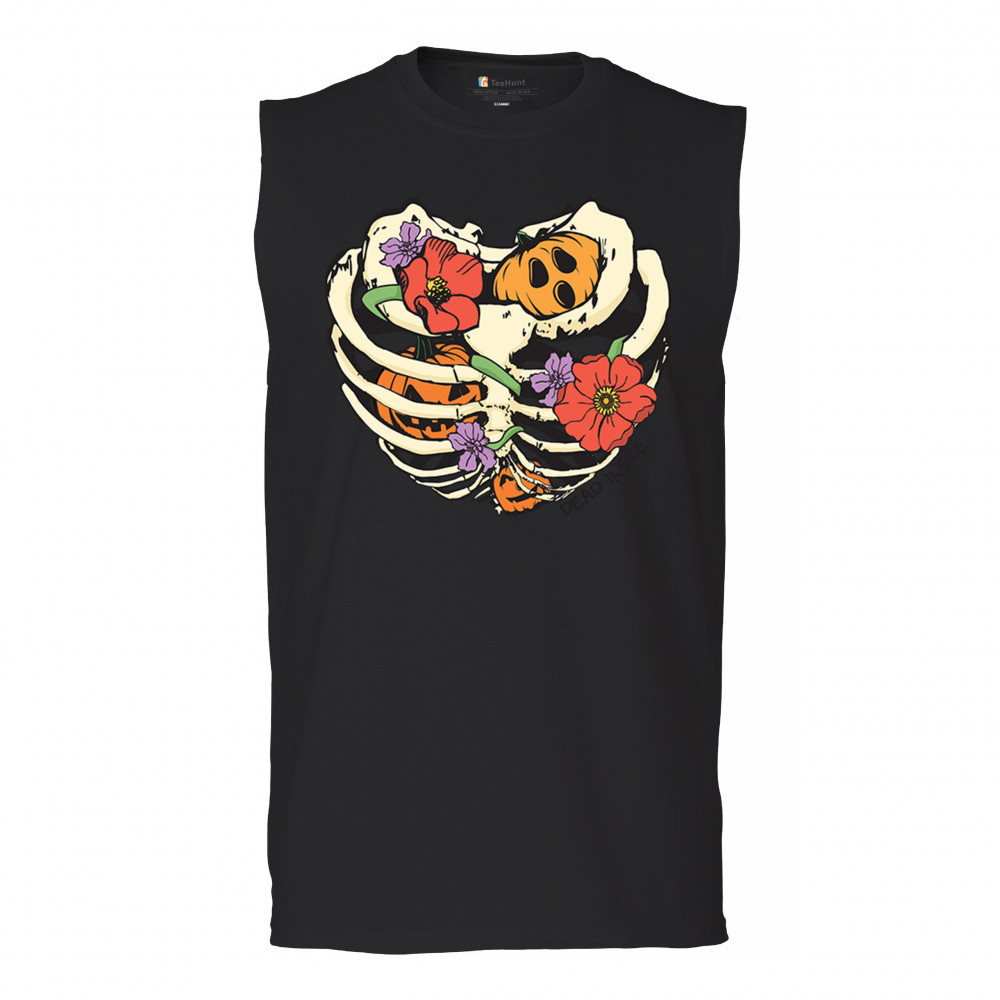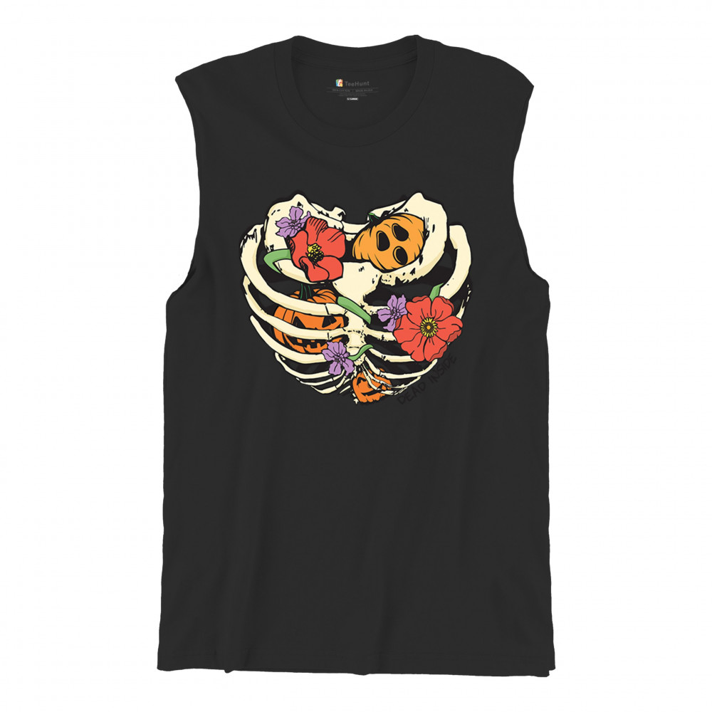 DEAD INSIDE muscle shirt halloween rib cage trick or treat spooky cute men's black