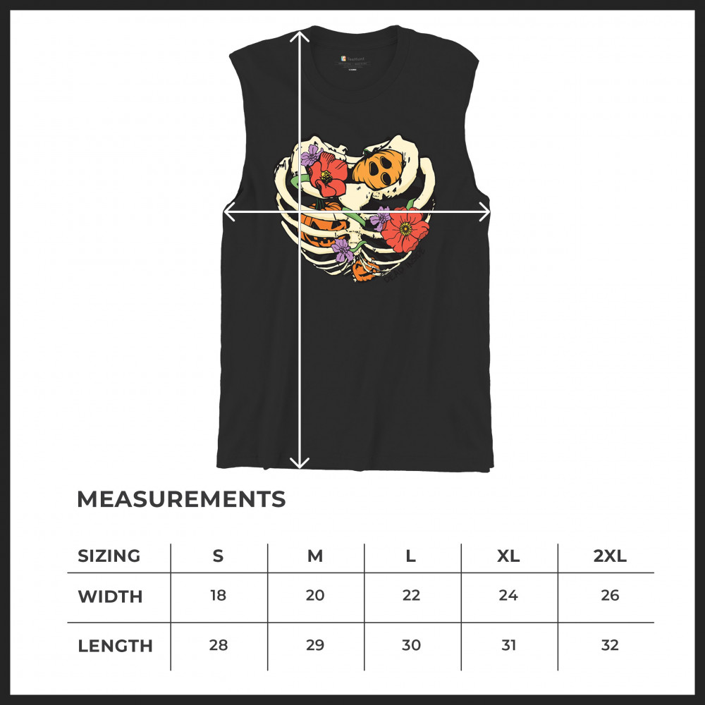 This Halloween-inspired design is sure to turn heads. The image features a skeleton ribcage with pumpkins and flowers intertwined, giving it a quirky yet cute appearance. Whether you’re preparing for a Halloween bash, getting ready for a night of trick-or-treating, or just want to celebrate the fall season in style, this graphic is a must-have. With its mix of spooky and sweet, it's perfect for anyone who loves a fun and festive look for the Halloween season.